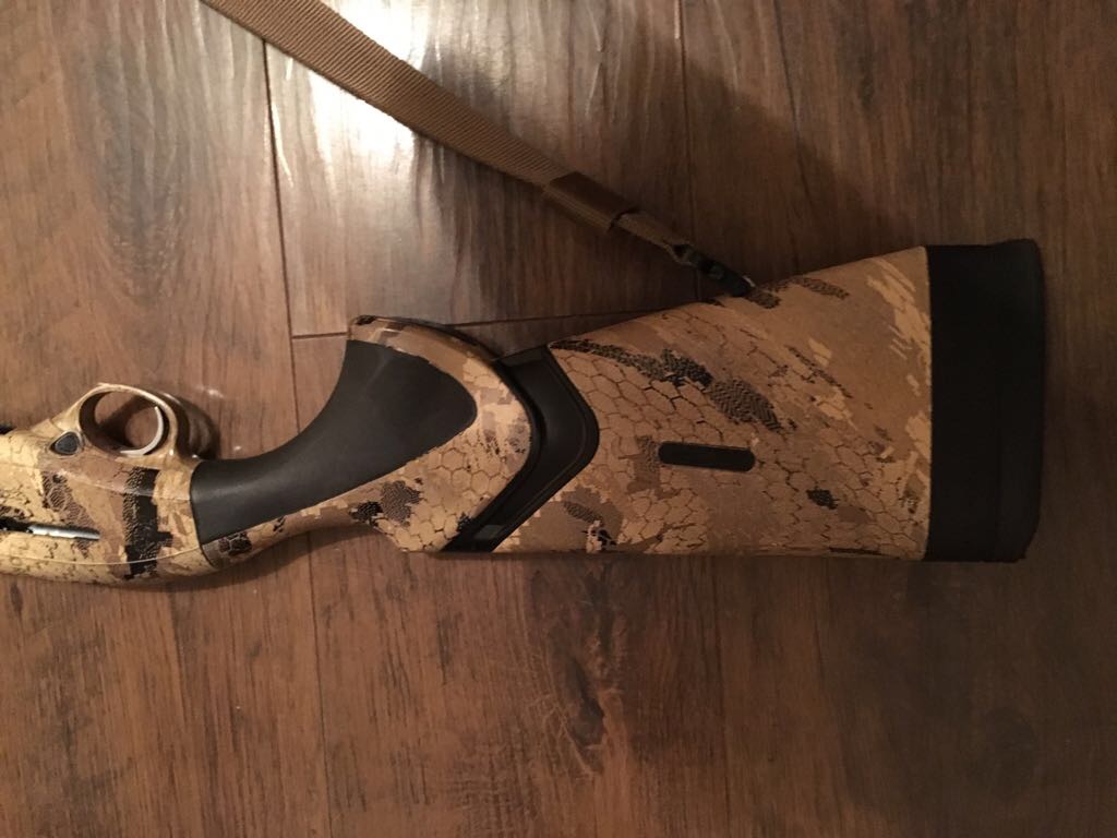 Цвет - OPTIFADE. Невидимый для птицы, очень хорошо подходит для охоты на гуся. Не бликует на солнце.