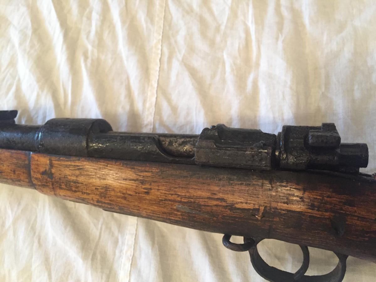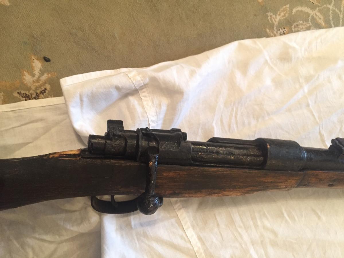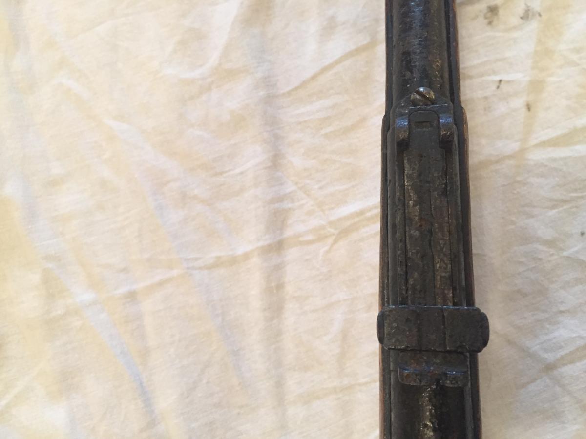 Утолщение на стволе - там переднее ложевое кольцо должно быть, а не где оно сейчас - эти бренные останки маузера "натянуты" на чуть перепиленную ложу мосинского карабина....