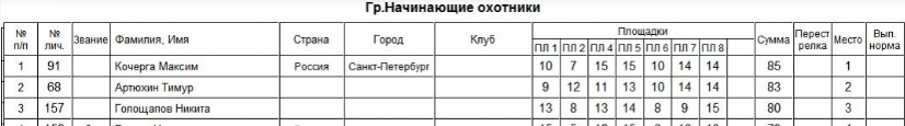 С разнесением в протоколах результатов по площадкам нехорошо получилось. Главное неудобство - не посмотреть кто и сколько попал на конкретной площадке. В общем плане конечно не принципиально, но все же всегда хочется "строгой бухгалтерской отчетности".