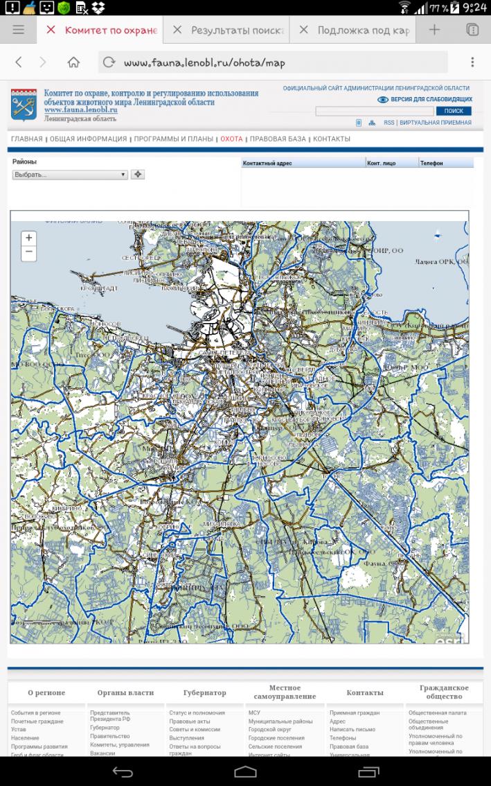 Приветствую. Может кто озадачивался таким вопросом...Заходим на сайт Комитета по охране, контролю и регулированию животинки в Ленобласти (ссылку не вставить, Питерхант ругается) , пытаемся посмотреть границы ООУ Ленобласти...Но, увы. "Подложка" местности отсутствует. Как ориентироваться в границах не понятно. Может только у меня так "кажет"? Интересно, возможно ли где "скачать" нужный файл? По запросу в "тырнете" ни чего хорошего...