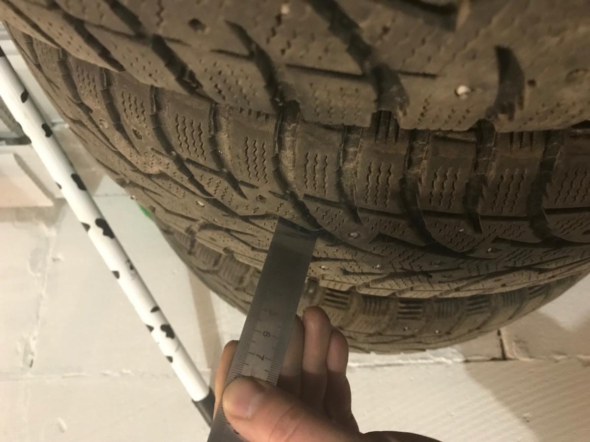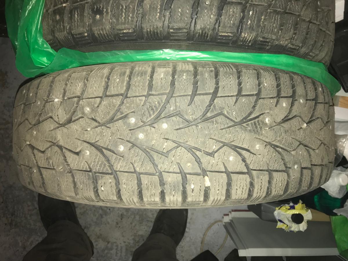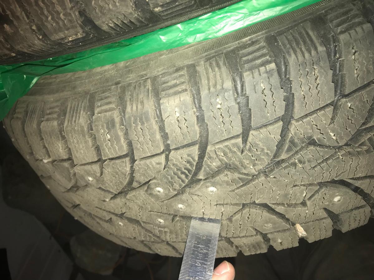 Резина б/у (2 сезона) в хорошем состоянии легко откатает ещё столько же, но частично нуждается в ошиповке..