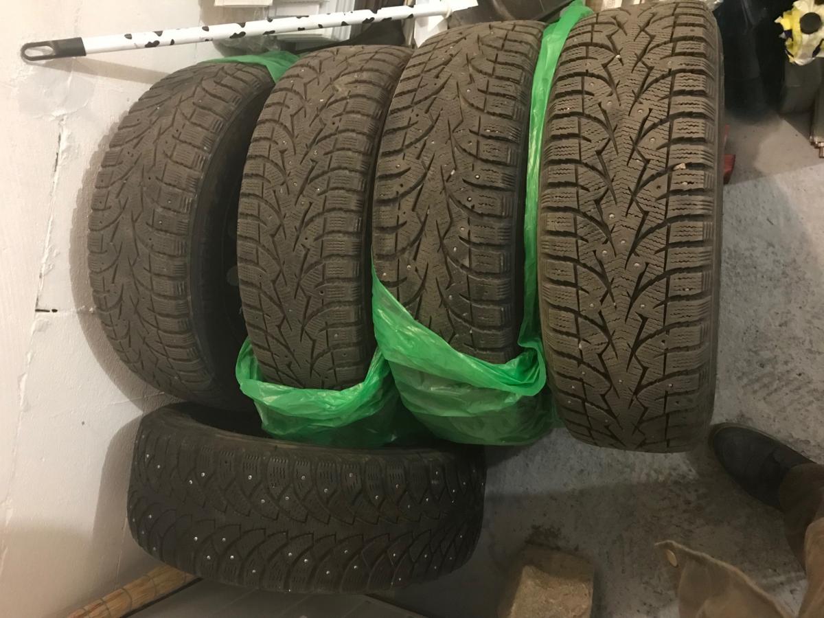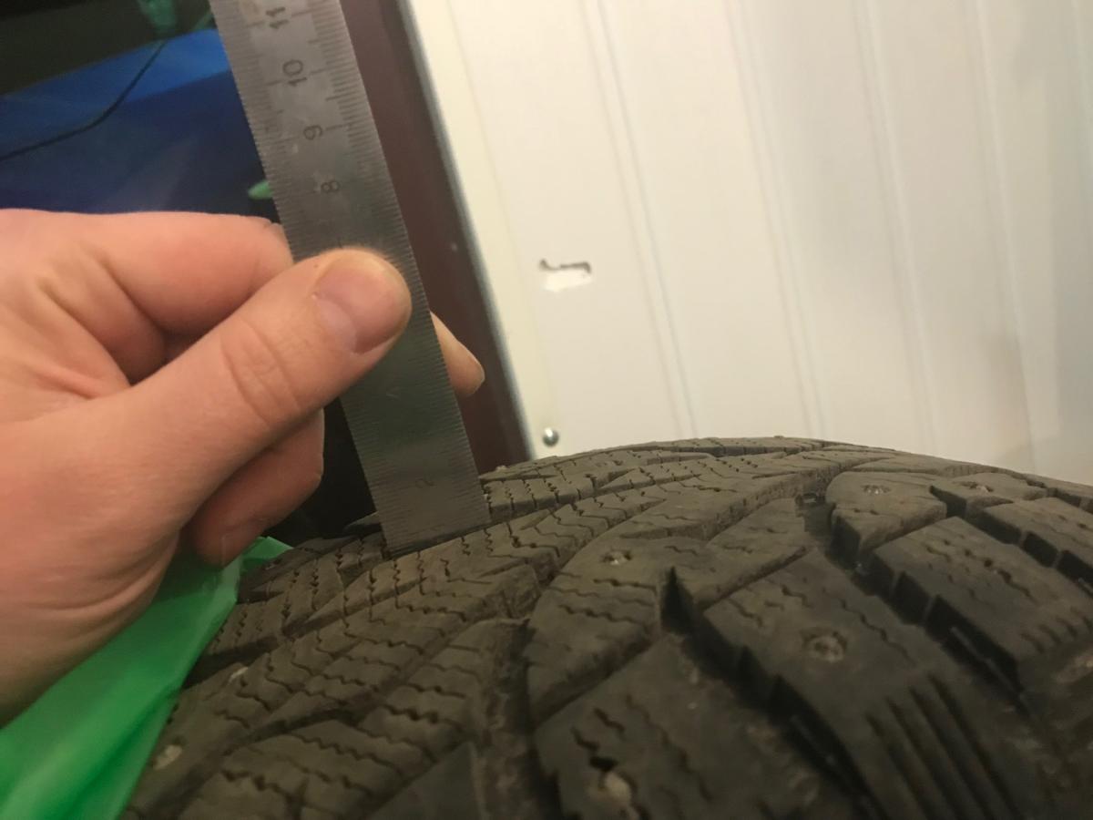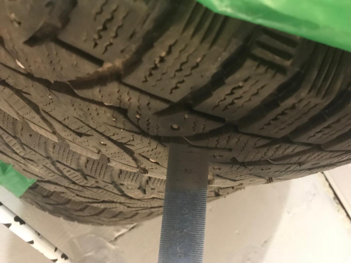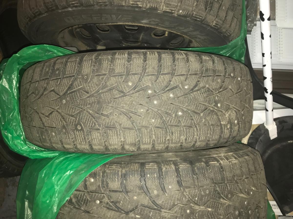 Резина б/у (2 сезона) в хорошем состоянии легко откатает ещё столько же, но частично нуждается в ошиповке..