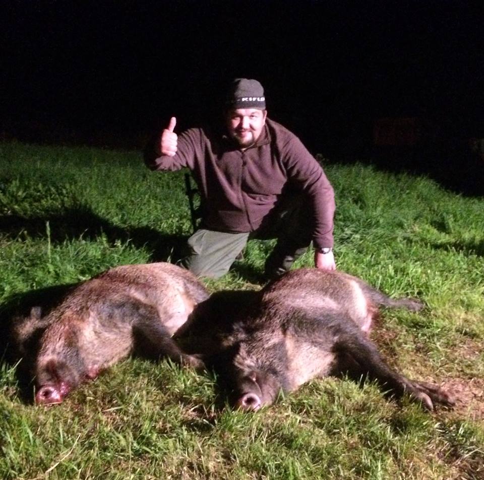 Слышу, а кабан-то на одном месте топочет. Вкладываюсь в карабин, включаю фонарь и вот он, видимо перебит позвоночник, не встать ему, передними копытами бьет по земле пытаясь подняться.