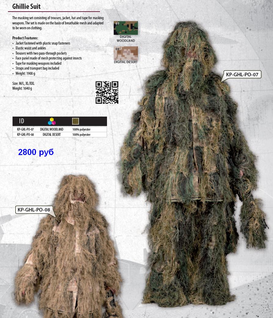Маскировочный костюм GHILLIE KP-GHL-PO. Цена 80 евро.