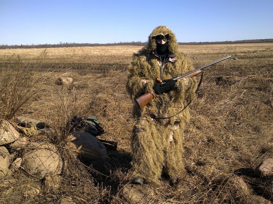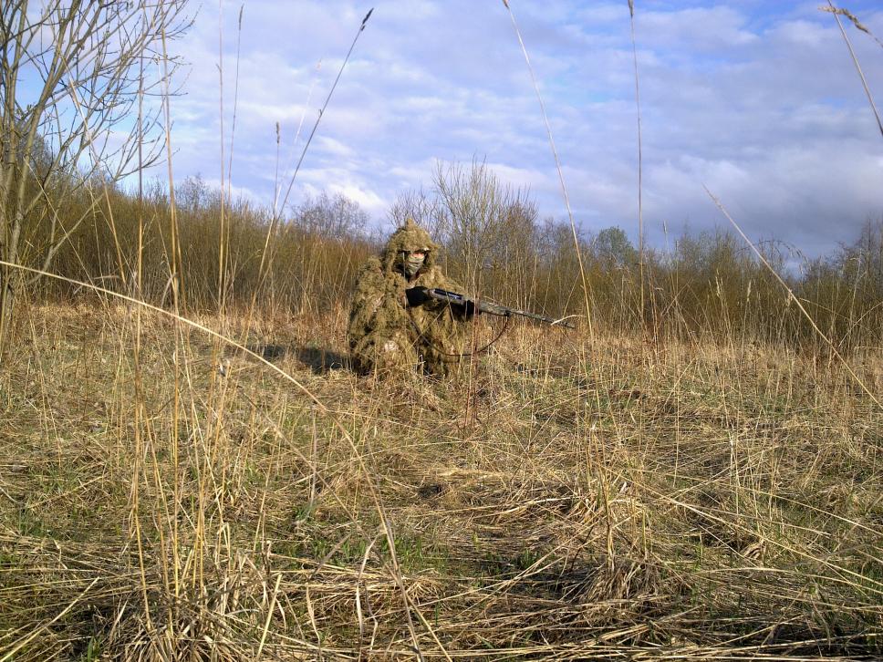 Сам пользую такой костюм. До этого был Леший - пончо из мочала. Преимущество в пользу GILLIE. Удобнее и передвигаться, и стрелять. Гораздо легче. Хорошо маскирует на стерне, в траве. На фото костюм одет поверх осенних брюк и зимней куртки. Маскировка для оружия подойдет только для карабина с оптикой. На гладкоствол такое не приспособишь.