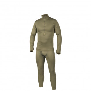 Комплект нижнего белья, состоящий из футболки с длинным рукавом и брюки, предназначенные для ношения как непосредственно на тело, так и поверх термобелья 1го слоя. Этот современный комплект (третьего поколения ECWCS) изготовлен из мягкого и легкого флиса, который имеет высокие согревающие качества и воздухопроницаемость, благодаря сетчатой структуре. Внутренняя, уникально сплетенная сторона белья ловит и аккумулирует тепло тела, в то время как влага проходит через специальные каналы и слой снаружи. Футболка имеет заниженный контур спины, отверстия для больших пальцев в рукавах, которые облегчают одевание нескольких слоев одежды. Воротник-стойка комфортно изолирует шею. Брюки имеют удобный эластичный пояс.