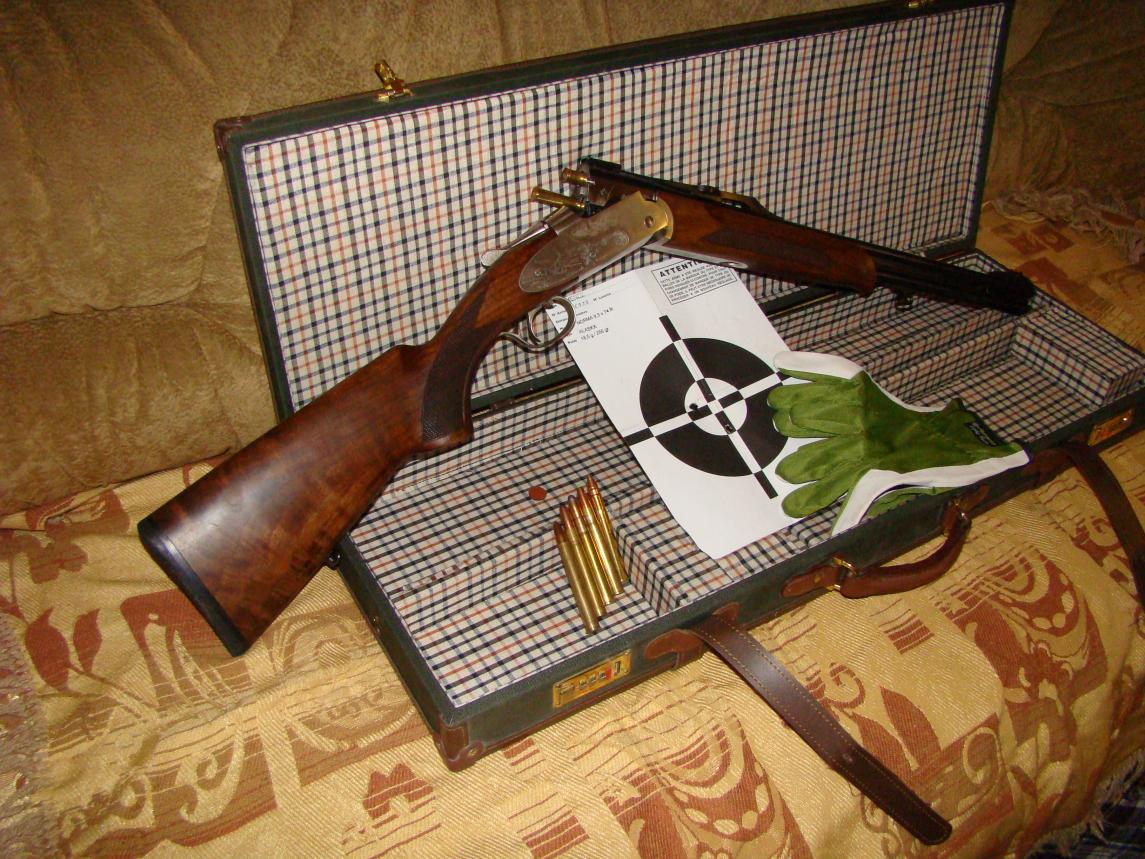 Тип оружия: карабин Дабл Експресс - штуцер с вертикальным расположением стволов. Полная длина: 100 см. Стволы: нарезные высокой точности 56 см. Механическая регулировка сведения стволов, хромированные из хром-молибденовой стали холодной ковки «Super Diamant». Спусковой механизм: одинарный не селекторный. Запирание: двумя коническими запорами. Дерево: орех отборный, отшлифованный и пропитанный маслом. Приклад: пистолетная рукоятка со щекой. Гравюра: классическая Экстра-Люкс. Экстрактор или автоматические эжекторы с молоточками. Прицельная система: прицельная планка бати, передняя мушка из оптической фибры. Оптика: места для быстросъемного крепления оптики системы МАК-установлен. Ударник: прямой осевой.