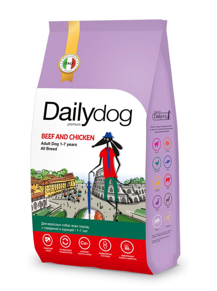 1. Dailydog casual line(производство Италия) 20 кг для собак всех пород, вкус говядина курица - 5100.​