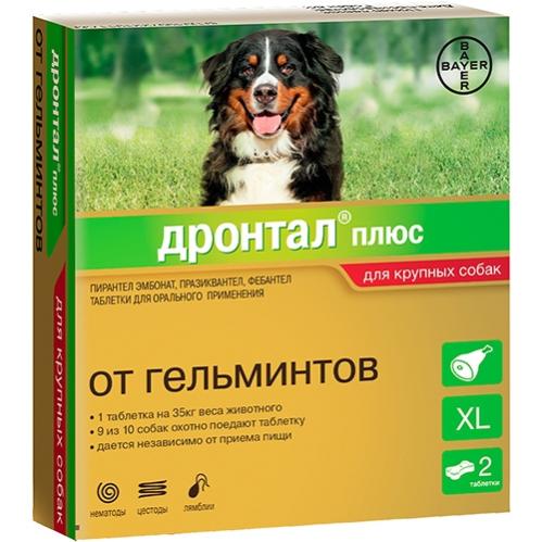 Дронтал плюс XL от гельминтов для собак до 35 кг 2 таблетки - 650