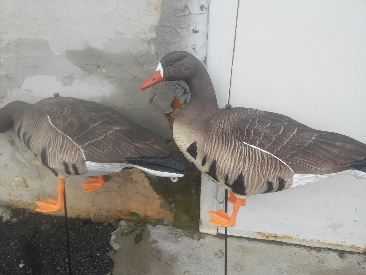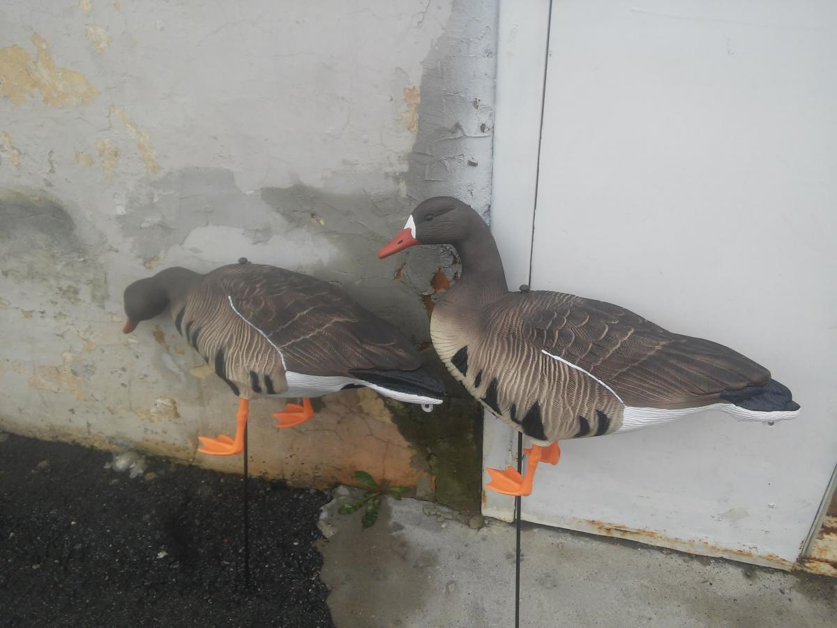 Чучела выставлялись один раз вчера, брал в сентябре фирма North Way. Эти нового образца, те что появились в конце лета. Состояние новых, единственное на лапах отрезал ласты, места много занимают. Цена за 20 шт 12000руб. Брал на аквазоне по 9100 за 10 шт