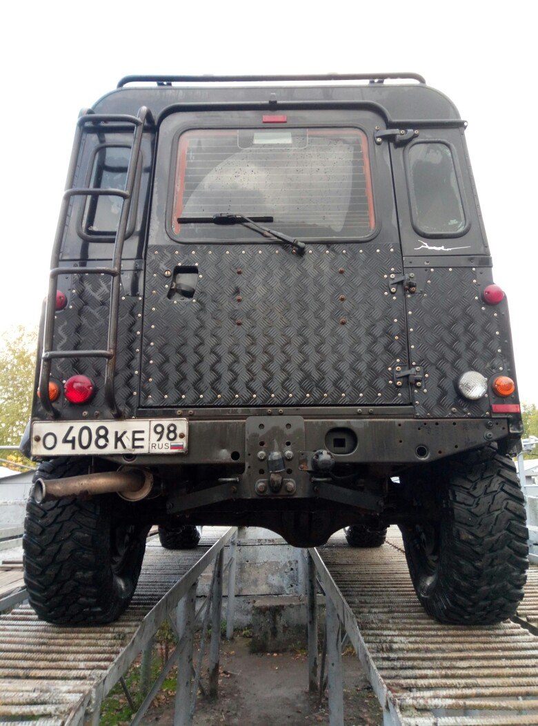 Из тюнинга и допоборудования (все приобретено и установлено в Лендровер сервисе на Ополчения 201): шумовиброизоляция салона, шноркель Сафари, оригинальный пластиковый прорезиненный кенгурятник, экспедиционный силовой багажник, силовые пороги с возможностью использования Хай джека, кузов обшит рифленым алюминием и покрашен в цвет кузова, расширители арок и проставки расширители колеи, лифт подвески 2' OldManEmu (Австралия. Пружины+амортизаторы. Установлены осенью 2016г), колеса 315/75/16 Cooper STT (установлены осенью 2016г, пробег на них чуть более 10000км+запаска на оригинальном литом диске).