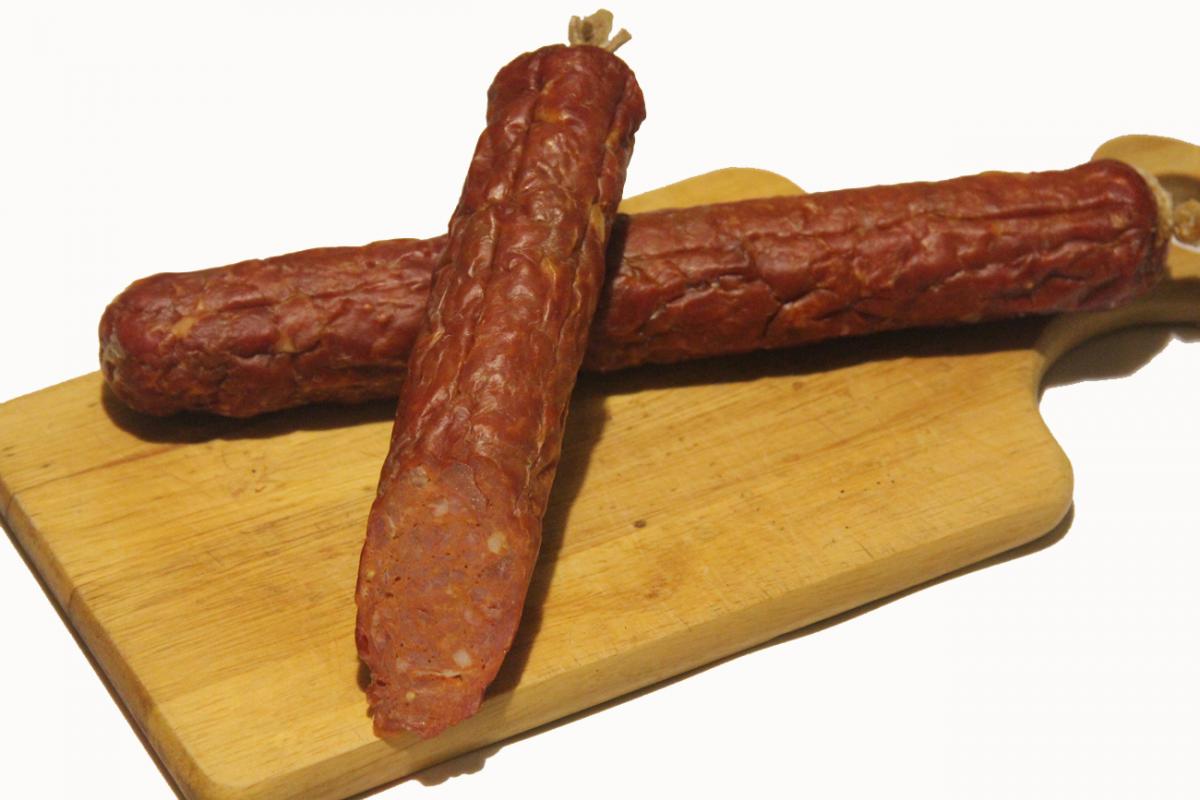 Состав: свинина (окорок, лопатка), нитритная соль, оригано, копченая паприка, кайенский перец, вино, чеснок.