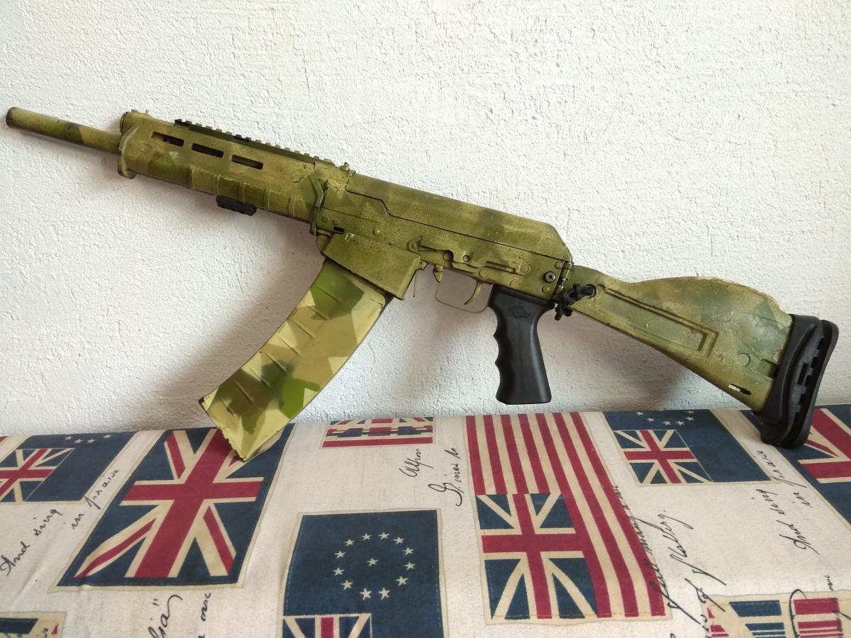 Продам супер тактическую Сайгу-12 =) Шахта веприная, рукоять тоже. Трубка с вивером от G-Gun. Приклад нарощен эпоксидкой для удобного прицеливания с ЭКП. Цевьё - Magpul от Remington 870, оригинал.Состояние хорошее.Комплектом идёт оригинальный ижевский полиамидный приклад, родная газовая трубка, заниженный и доработанный крон ВОМЗ на боковую планку и две ижевских десятки. Сайга стабильно работает на охотничьих и спортинг патронах от 28-ми грамм. На 26-ти граммовых заводится только с быстрым порохом.