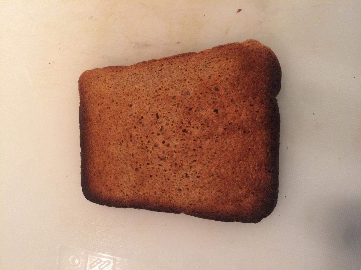 Черный, лучше ржаной хлеб, поджариваем в тостере.