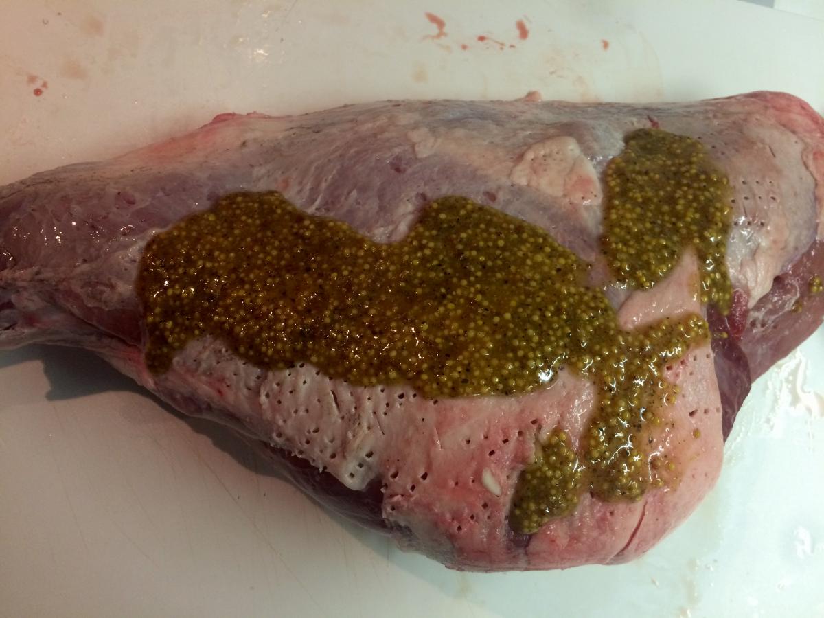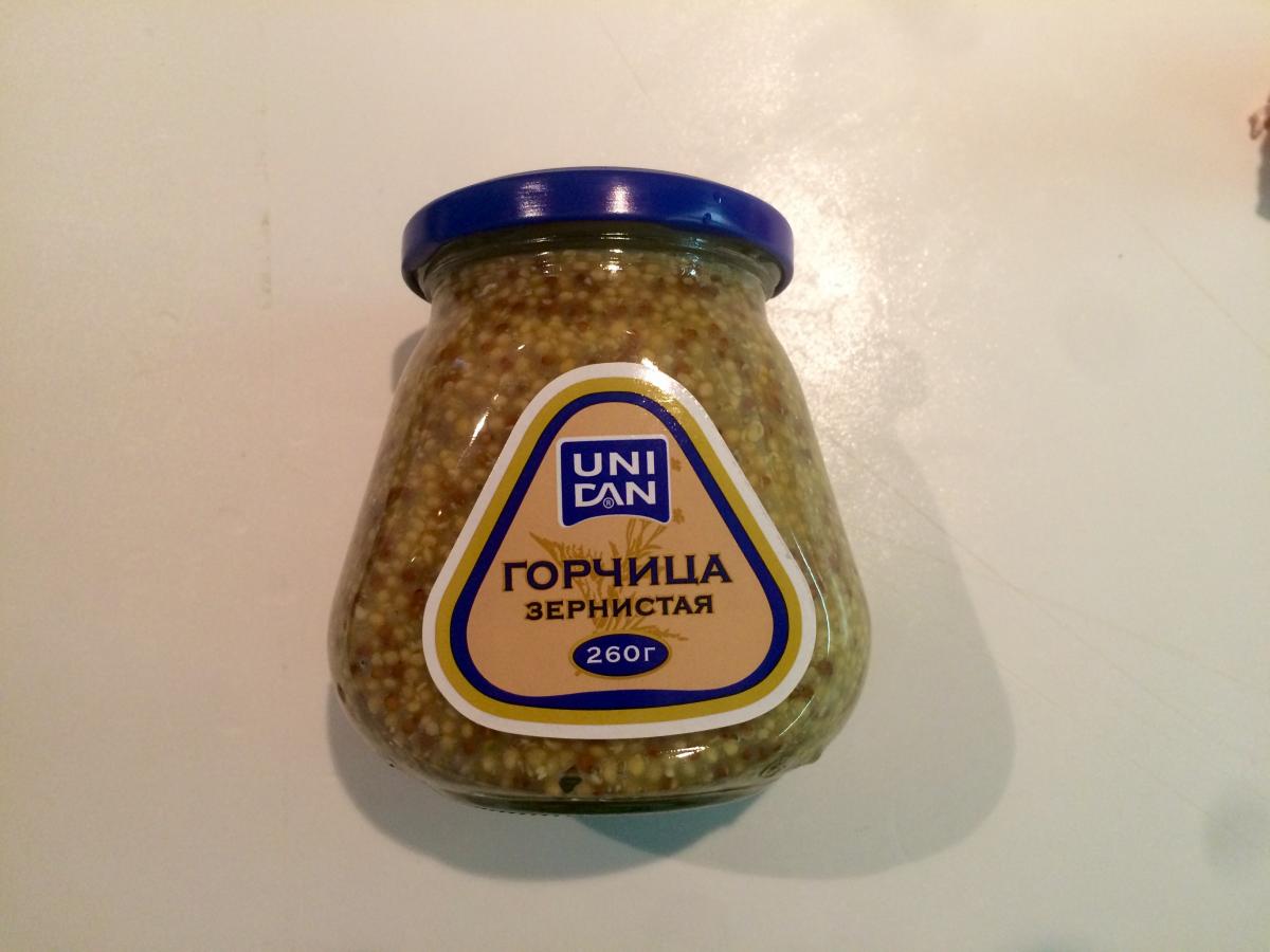 Смешиваем: соль, чёрный перец, русскую и дижонскую горчицу, мед.