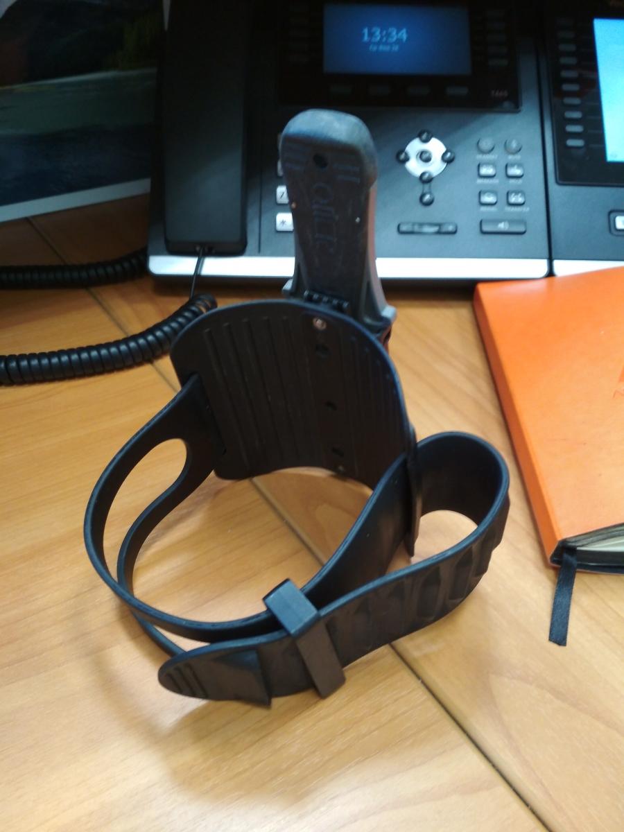Удобное широкое крепление на руку состоящее из резиновой широкой стропы и прикрепленным к ней ножнам.