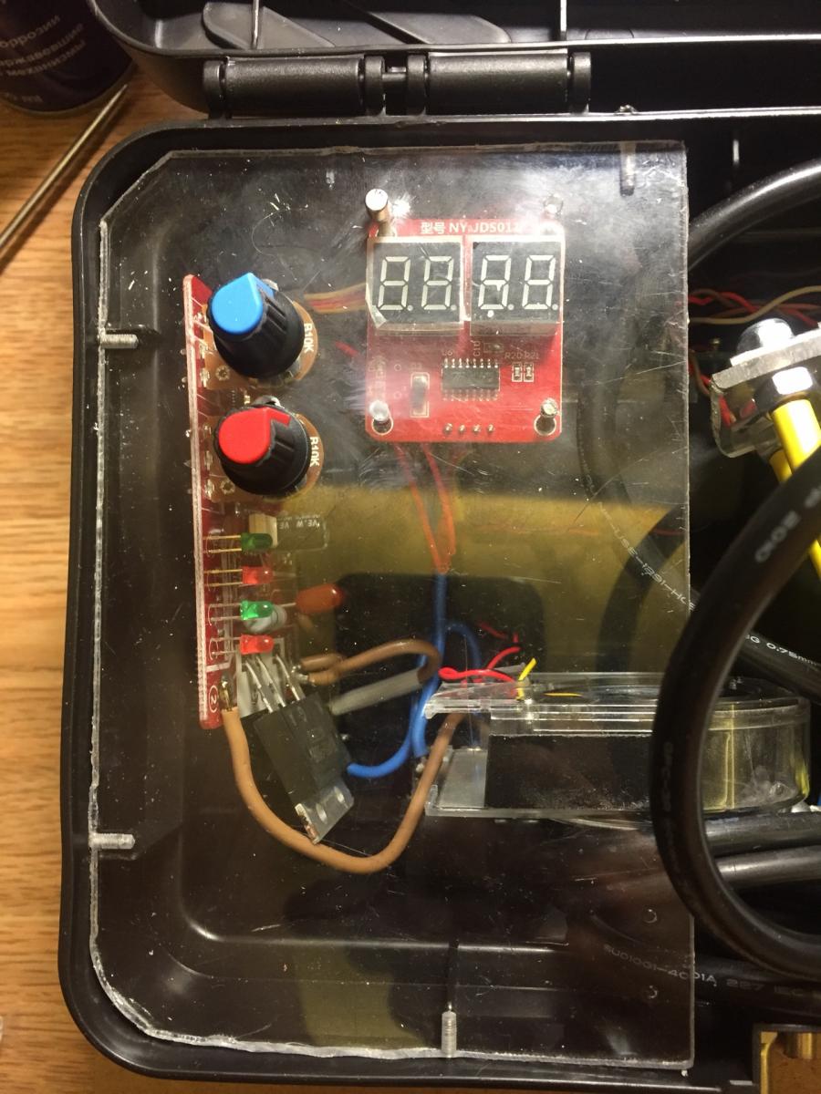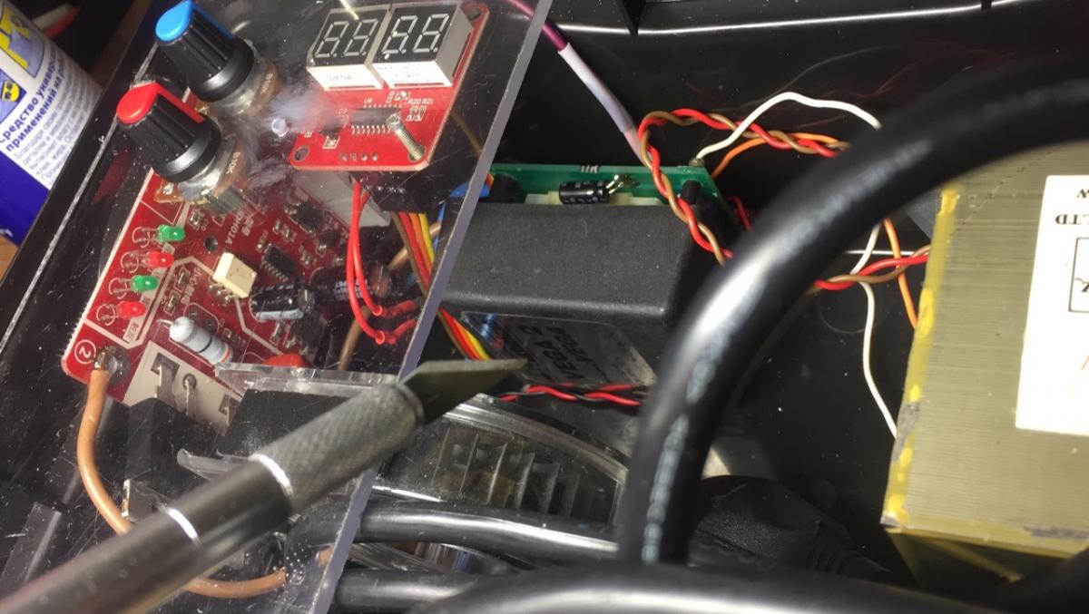 В проекте поучаствовали: трансформатор от СВЧ, немного толстого кабеля, плата управления на тиристоре (списибо КНР) з/у от Веги (для питания платы) медный пруток, выключатели, разъемы, микрик вместо педали) ну и куча по мелочи. В ход пошел даже кулер со старой видяхи для охлаждения тиристора (который как выяснилось при выполнении моих задач не греется совсем))