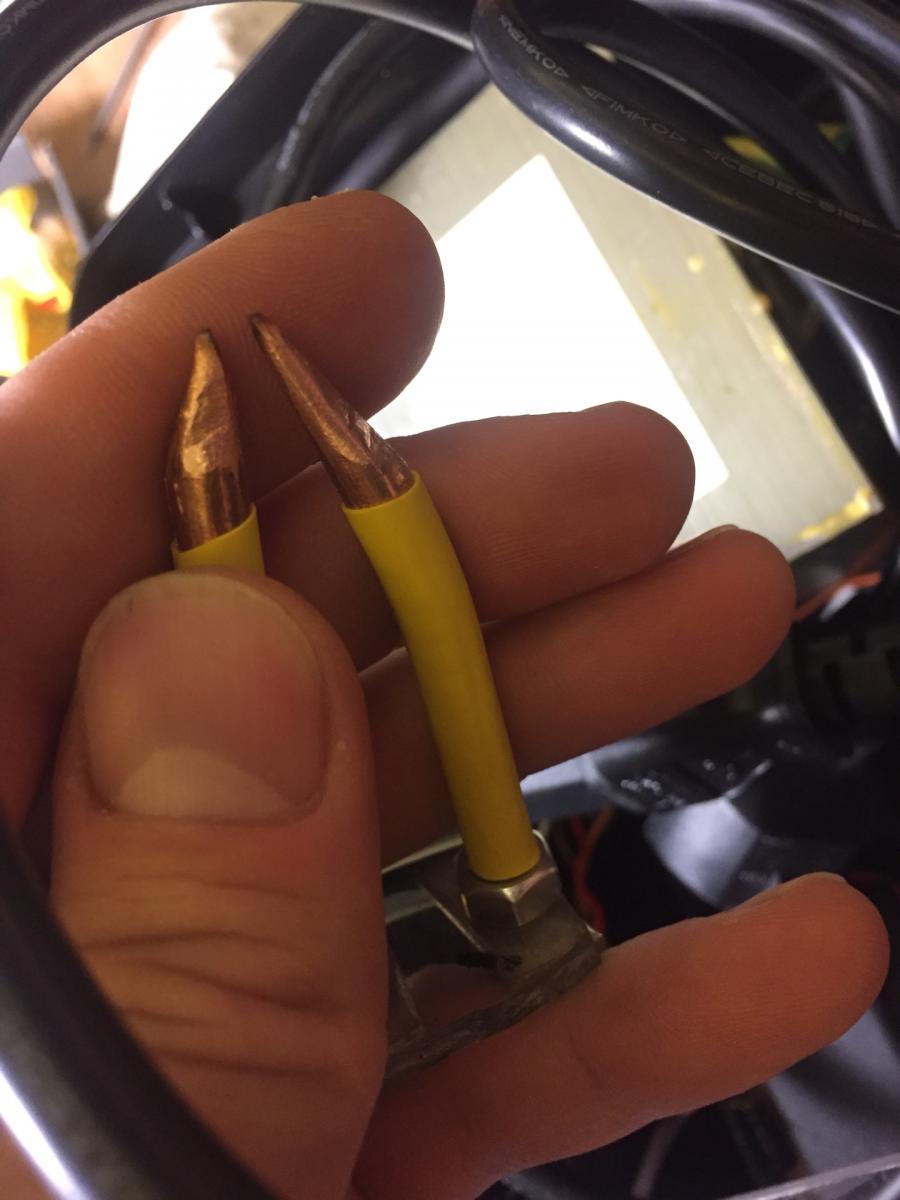 рабочие провода 10кв.мм, наконечники из медного прутка 6мм.