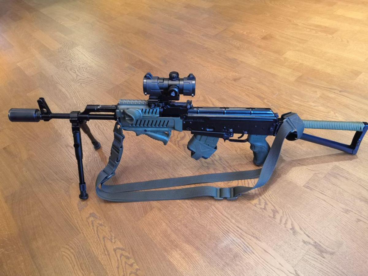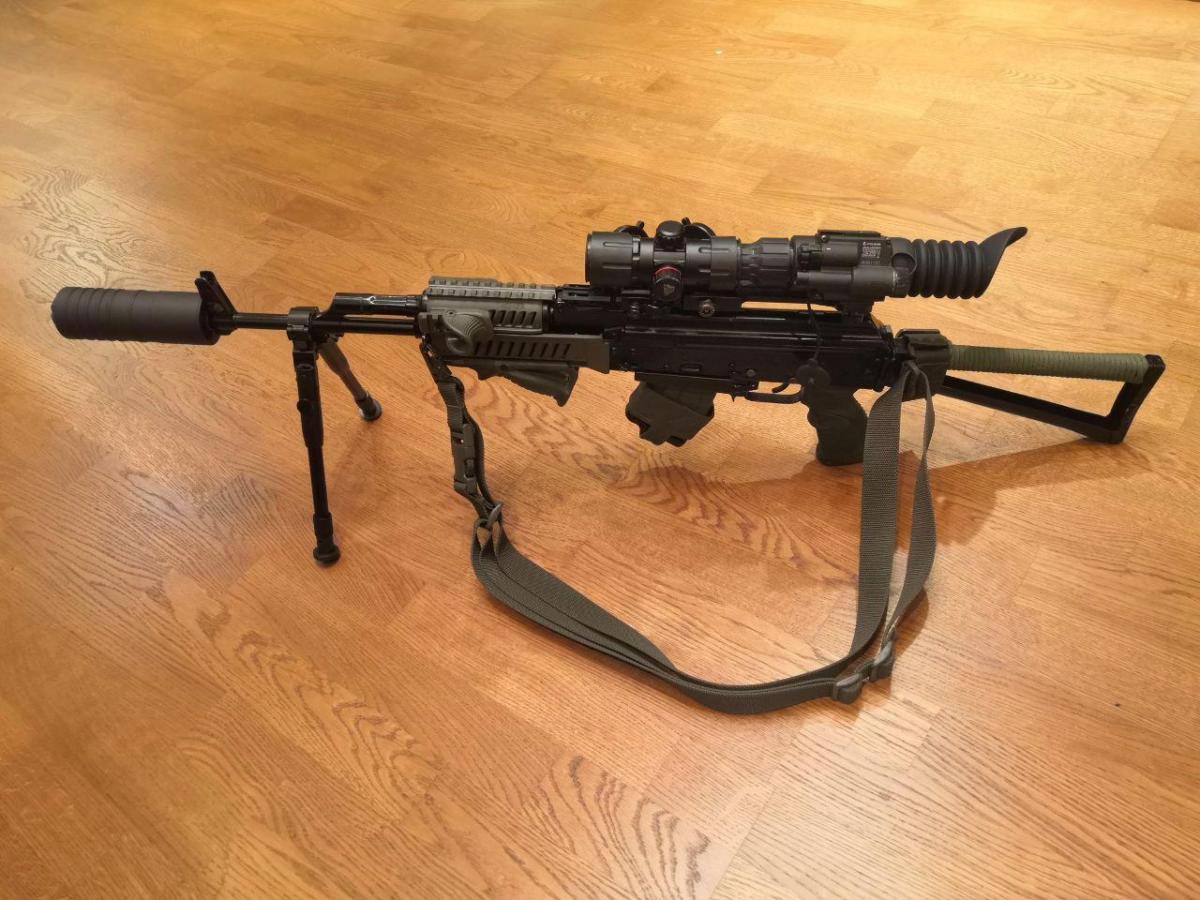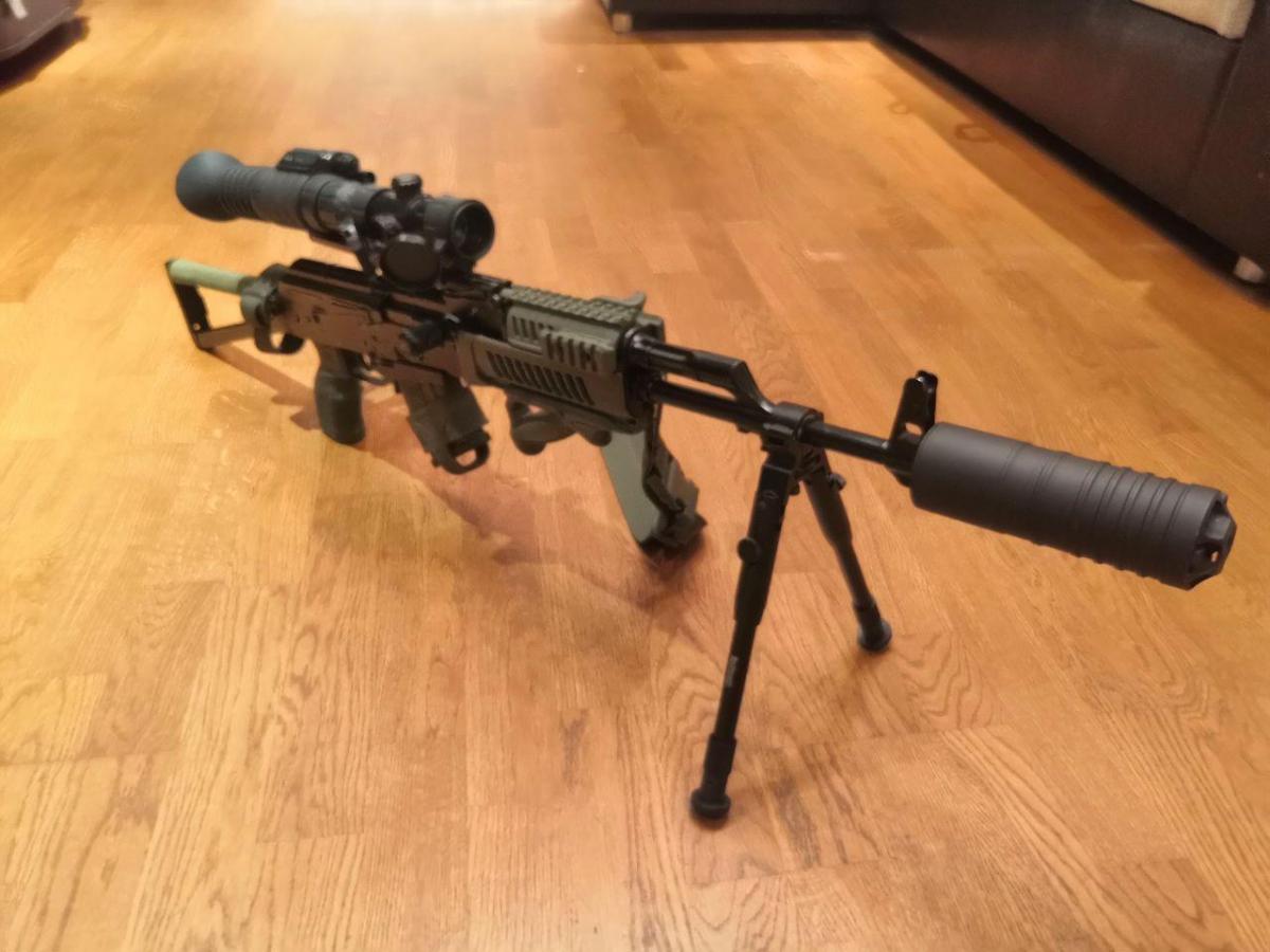 Вот такой вот получился! Модератор звука от Гексагон, приспособил ПНВ Pulsar (барашек включения коллиматора немного мешает ИК подсветки ПНВ, но в целом видно отлично).