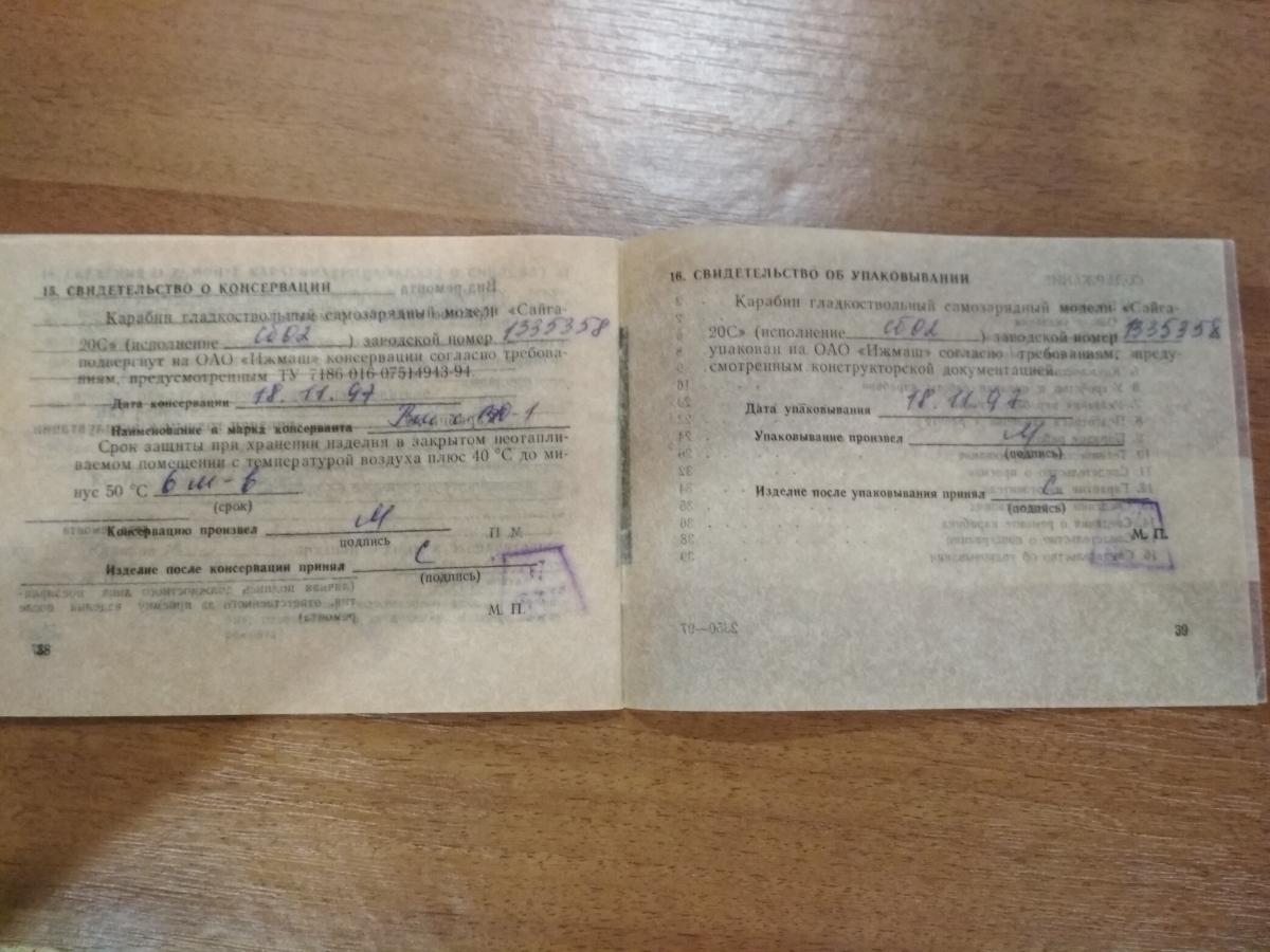 1. Модель ружья: сайга 20С