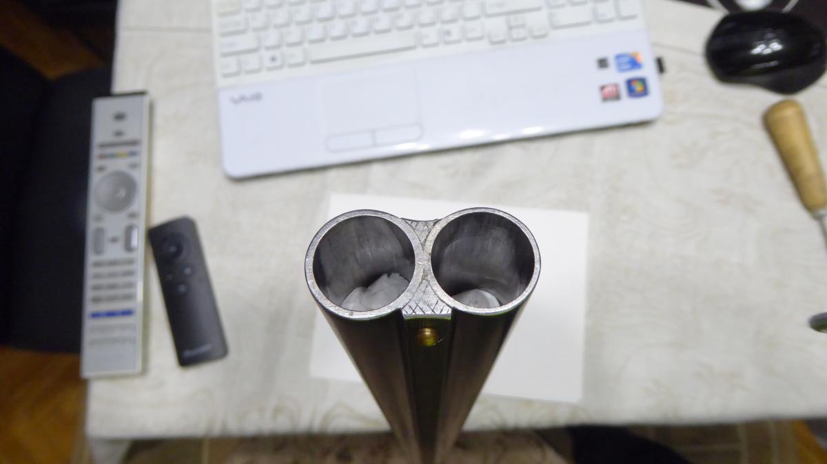 Внутренний диаметр стволов на срезе примерно: Л 161 мм, П 163 мм. Длина стволов примерно 717 мм. Расстояние от среза приклада до 1-го с/крючка примерно 360 мм.