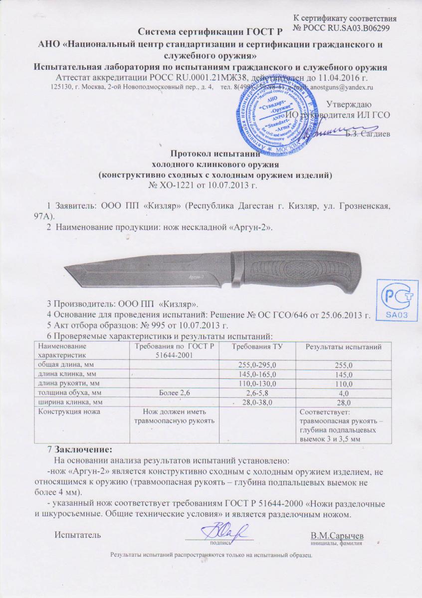 Характеристики ножа: