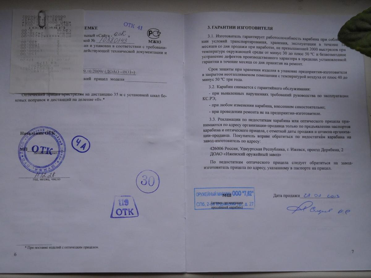 Куплено новым. Допы : 5 магазинов (4 шт 20х76, 1-20х70), насадки - цилиндр и получок (+17 см,+13 см), лазерный прицел для Сайги, лазерный патрон, ключ для насадок. За указанную цену : ствол и 2 магазина (на выбор) + один подарок (на выбор). Остальные допы за доп. плату.