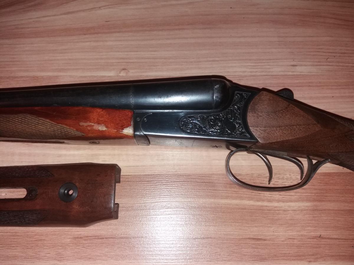 Обычный старый советский ИЖ, стволы без раковин, шатов нет, заменен приклад на ореховый типа МонтеКарло, цевье новое тоже в наличии, поменять все руки не доходят).