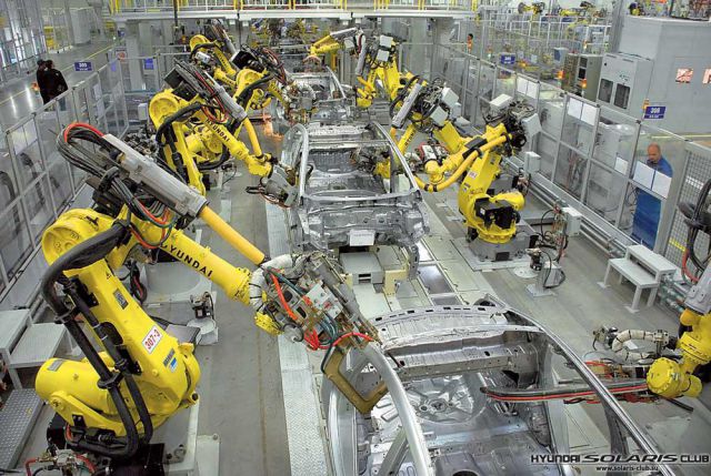 робота??)))Роботы варят, контроль жесткий, если, что не так-нафиг с конвейера.