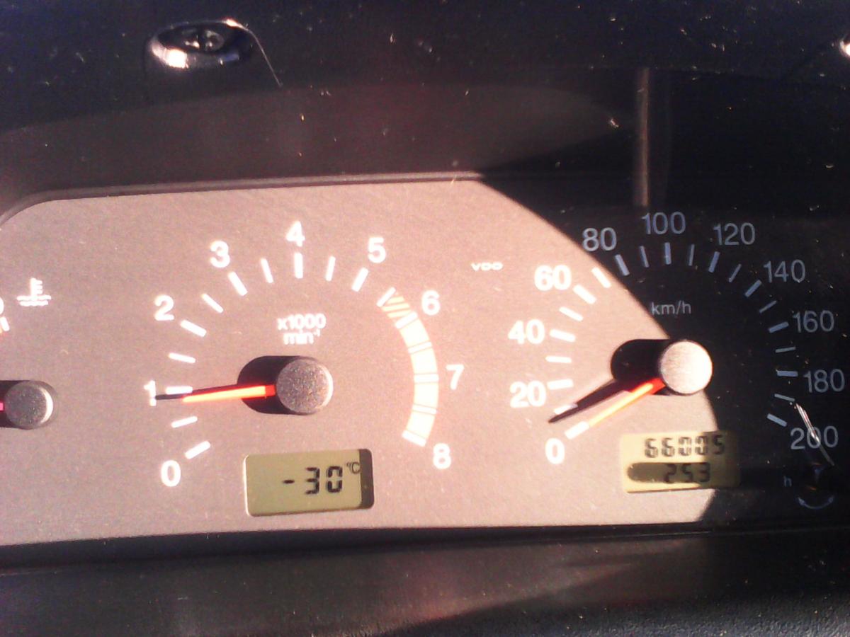 27-го взял дробовик и поехал этого норного зайца искать. Погода тоже тихая, но мороз покрепчал, только в норе и днёвку делать. На щитке приборов авто -30 и солнечно.