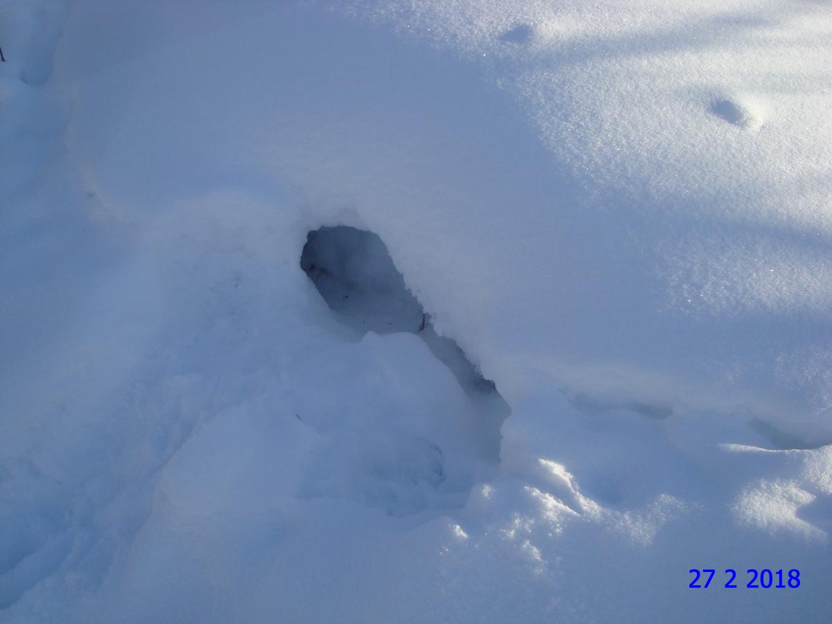 Приехал к полям и пошёл проверить присутствие зайца у старой норы.