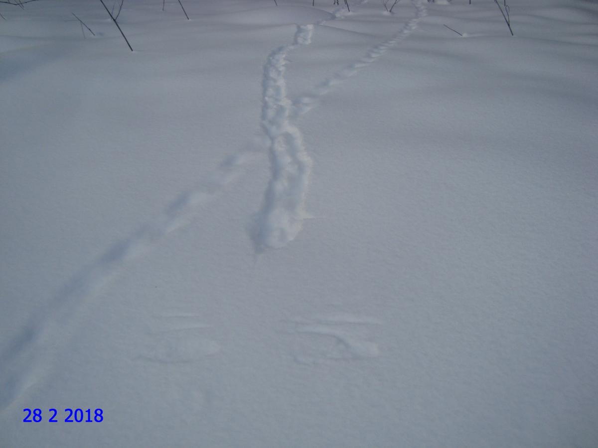 Продолжил свой путь. Зайцев свежих не нашёл, а вот рябчик один подставился. В Карелии вся боровая до конца февраля, к слову.