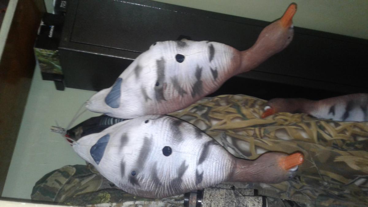 Продам б/у чучела белолобого гуся Softplast от компании North Way. В комплекте 10 штук - 2 активных, 8 кормящихся. Также на каждое чучело идет пара лапок, колышек с площадкой для установки на поле. Состояние хорошее - использовал 1 сезон (4 охоты осенью). Продаю в связи с переходом на несминаемые объемные чучела. Цена - 6000 рублей. Тел. 8-911-709-65-59.