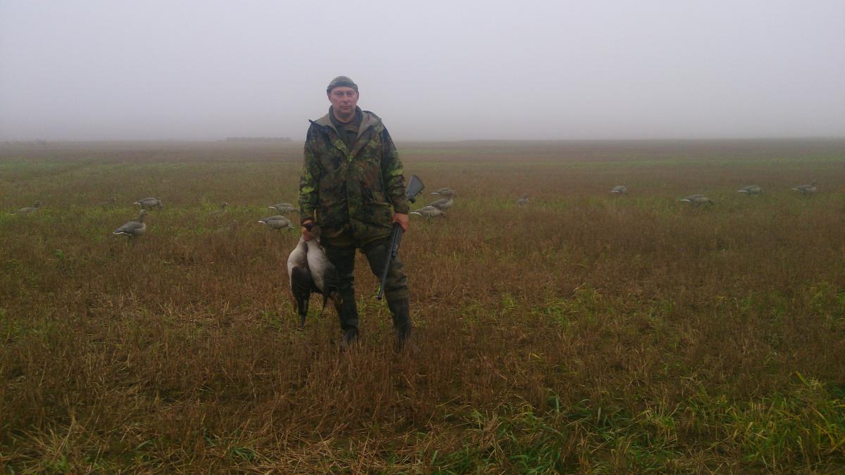 Утром, еще по темну, гуменик одиночка вроде пошел на манок, но потом что-то ему показалось подозрительным, прошел метрах в шестидесяти и больше не вернулся. Я его еще вчера вечером наблюдал, отстал от стаи, один по полям носится, но опытный, просто так не ведётся.
