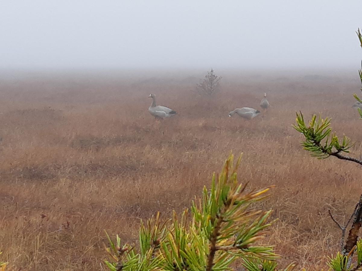 Сегодня ветер, дождь временами, гуся одна небольшая стайка на самом рассвете и одна двойка в самом финале. Подсела к лебедям минут на пять, а затем дальше полетели. Шансы ещё что-то добыть на озере стремительно идут к нулевой отметке.