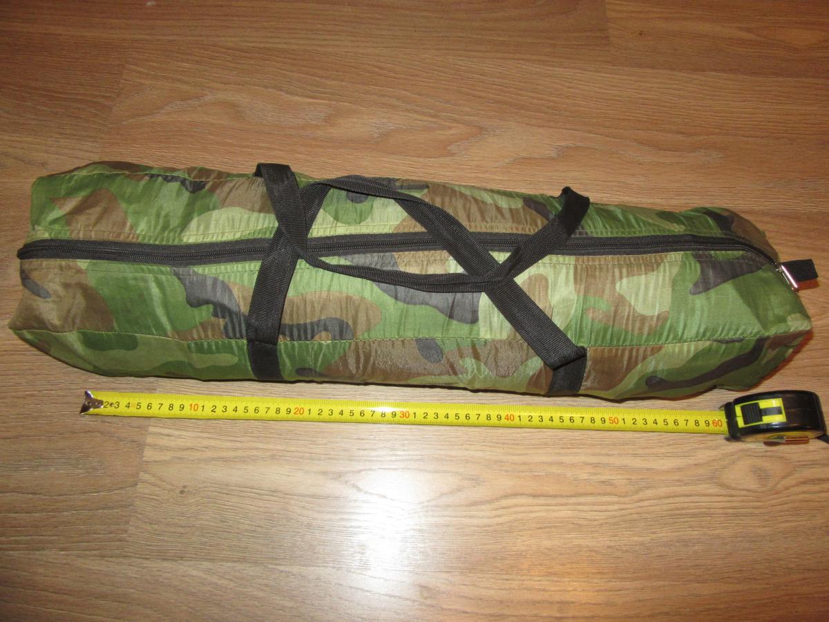 Продам трехместную (200х200х130см) однослойную китайскую палатку.Камуфляжная расцветка. Вес упакованной палатки 2,2 кг (чехол, дуги, колышки,веревки-растяжки).
