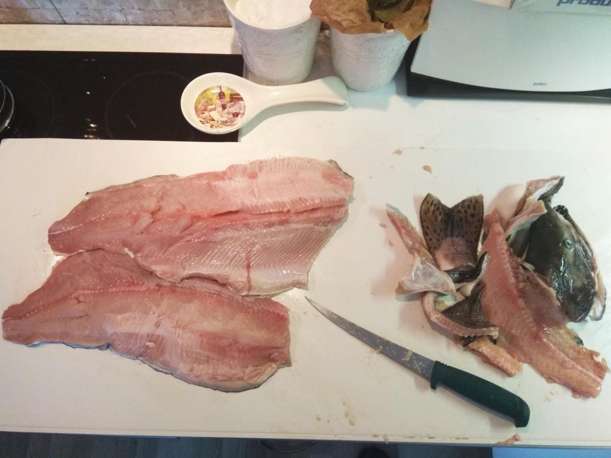 Отрезаем голову, плавники, хвост, хребет ну и добавляем пару мясных кусочков.