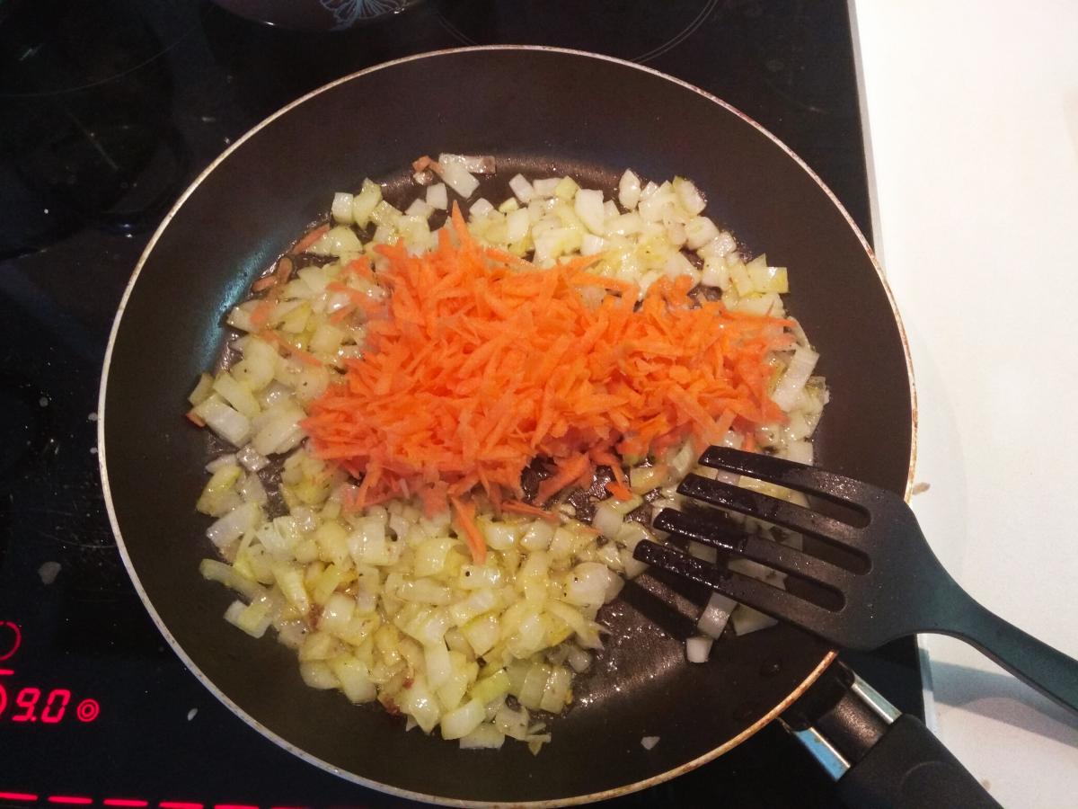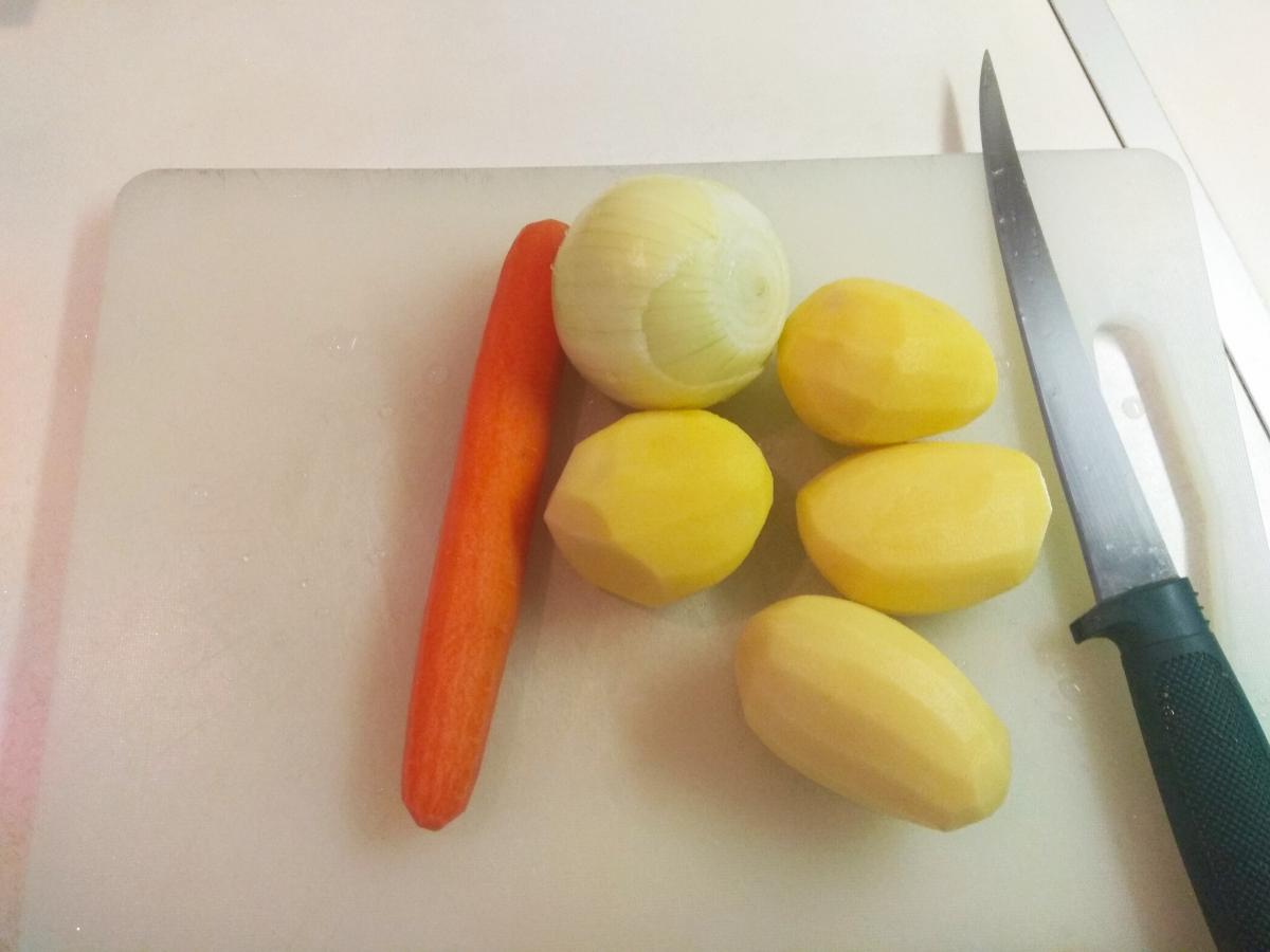 - Пока рыбный бульон закипает, подготавливаем овощную заправку.