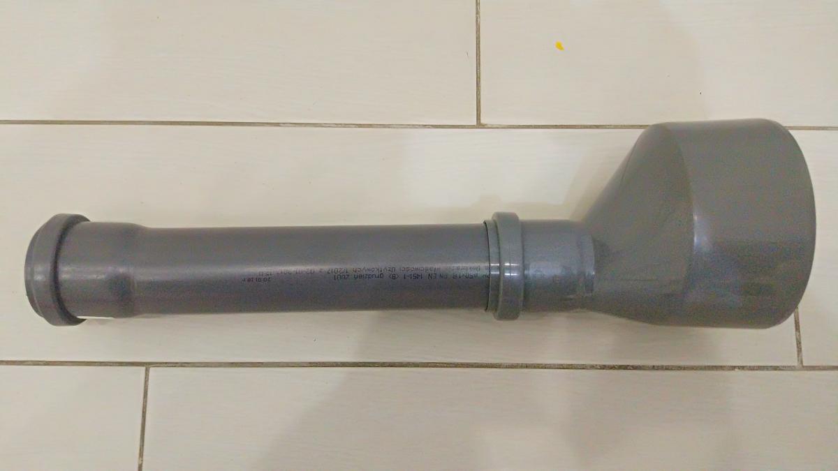 По своей сути труба сделана из двух кусков пластмассы. Два конуса одинаковой длинны, вставлены один в один и соединены шурупами. При движении воздушный поток разделяется на две части, что в свою очередь приводит к большему распространению в воздушном пространстве.