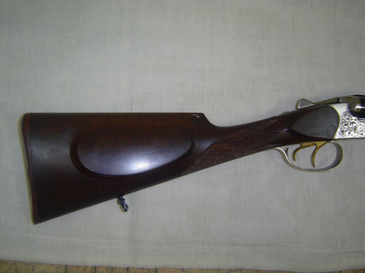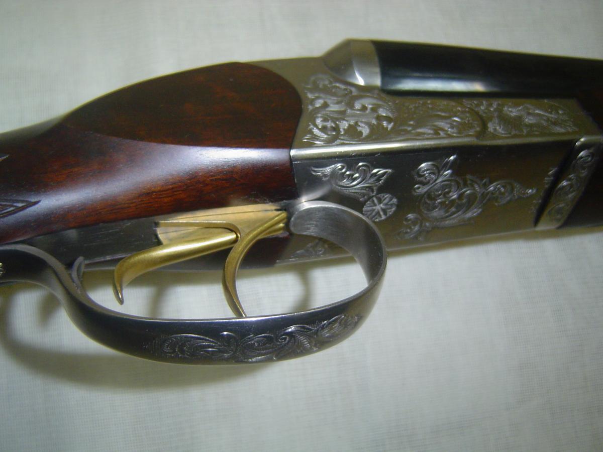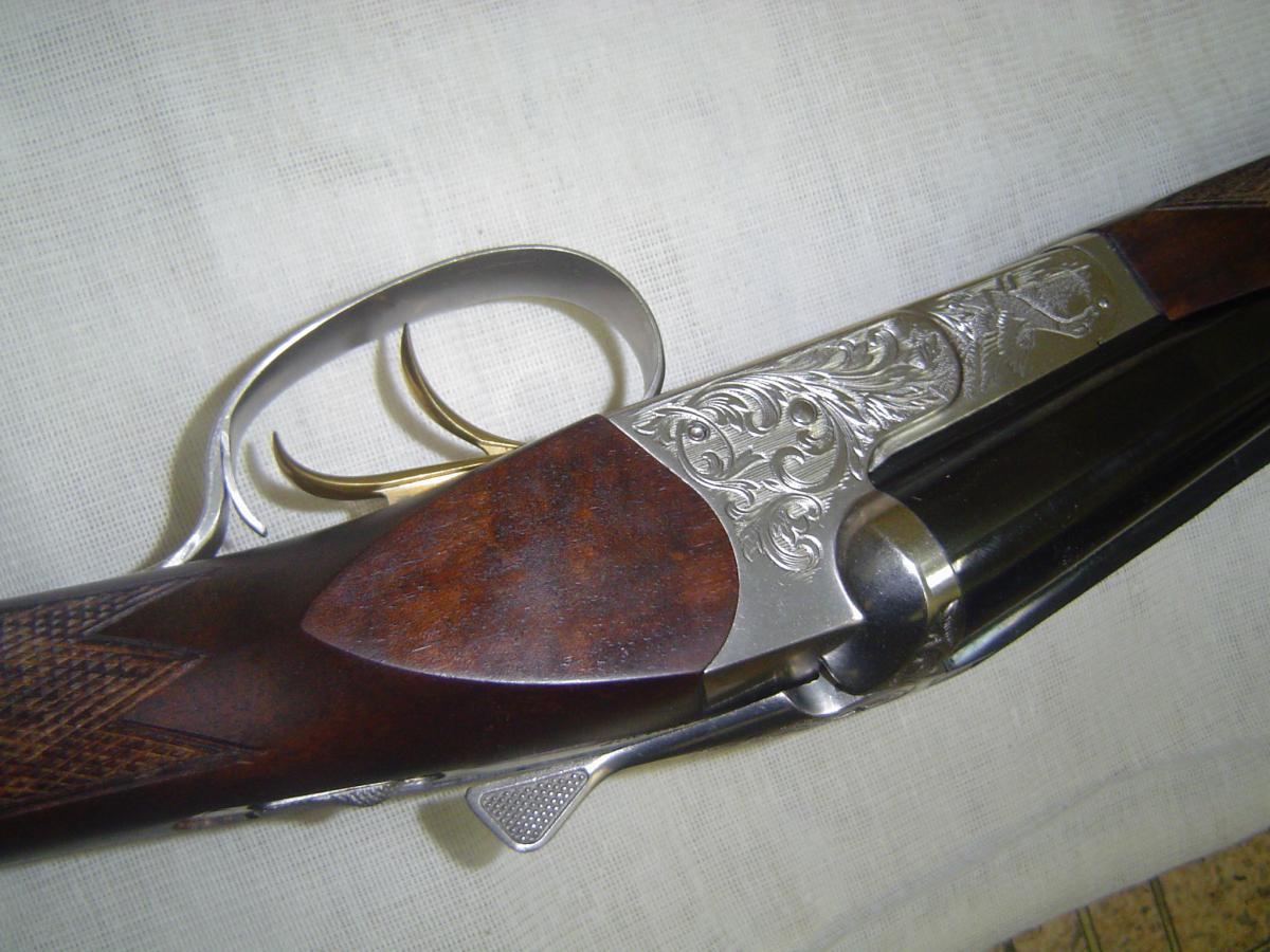 4. Материал ложи: темный орех (ложе английского типа с отводом влево, для левши), ручная гравировка по металлу (нержавейка) на коробке и скобе