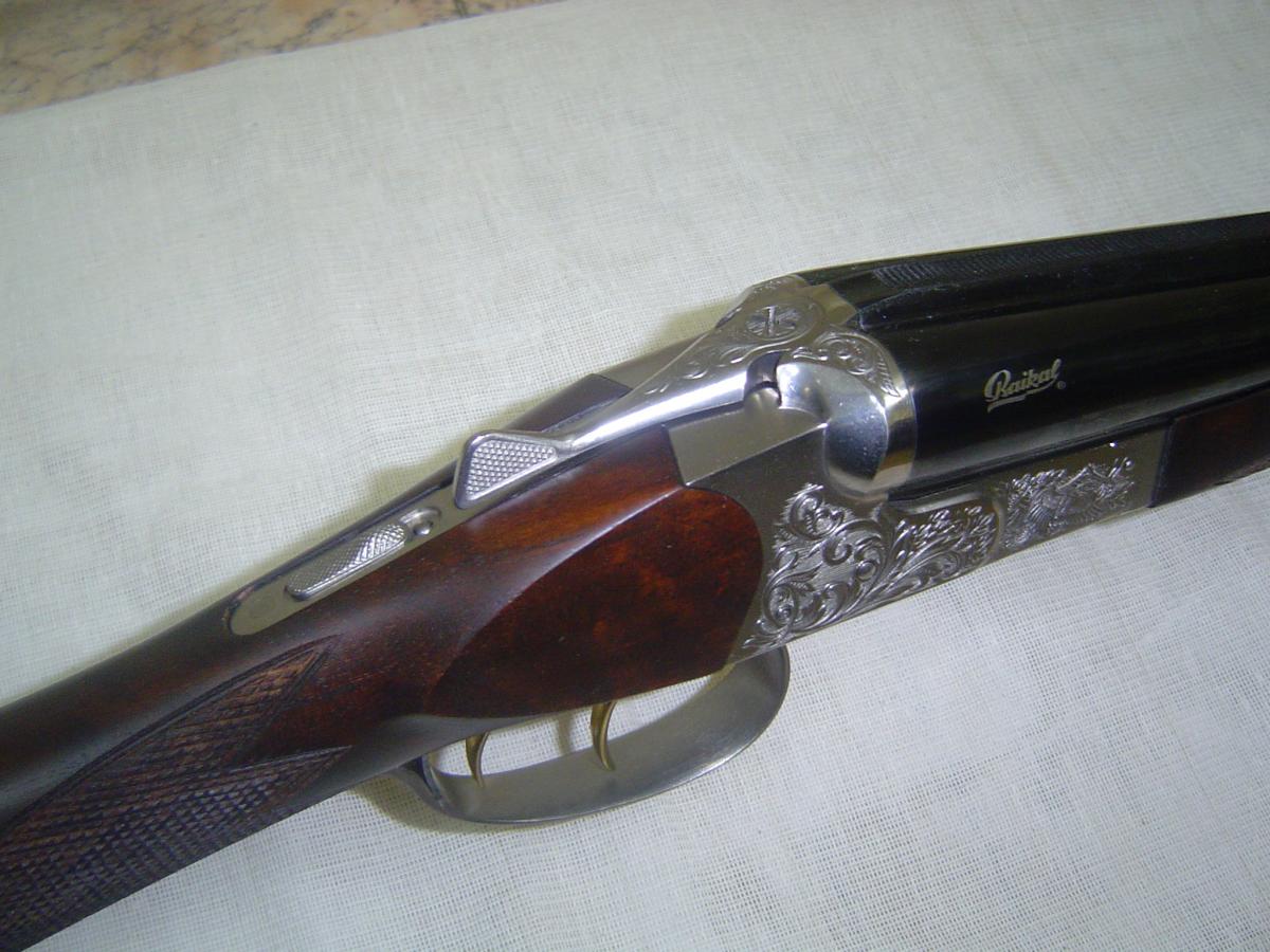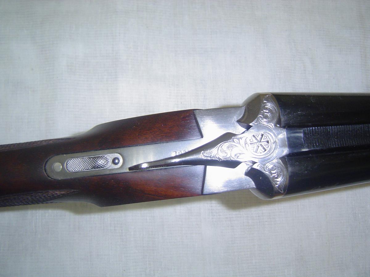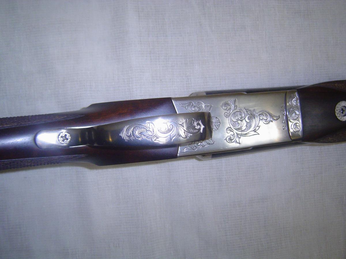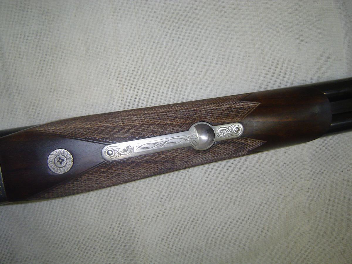 4. Материал ложи: темный орех (ложе английского типа с отводом влево, для левши), ручная гравировка по металлу (нержавейка) на коробке и скобе