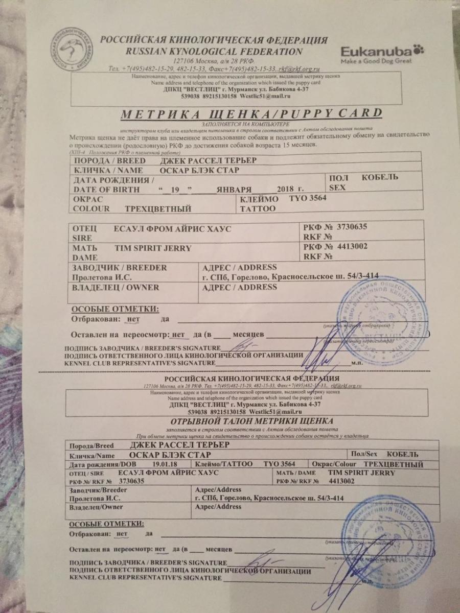 3. Дата рождения щенков: 19.01. 2018г.