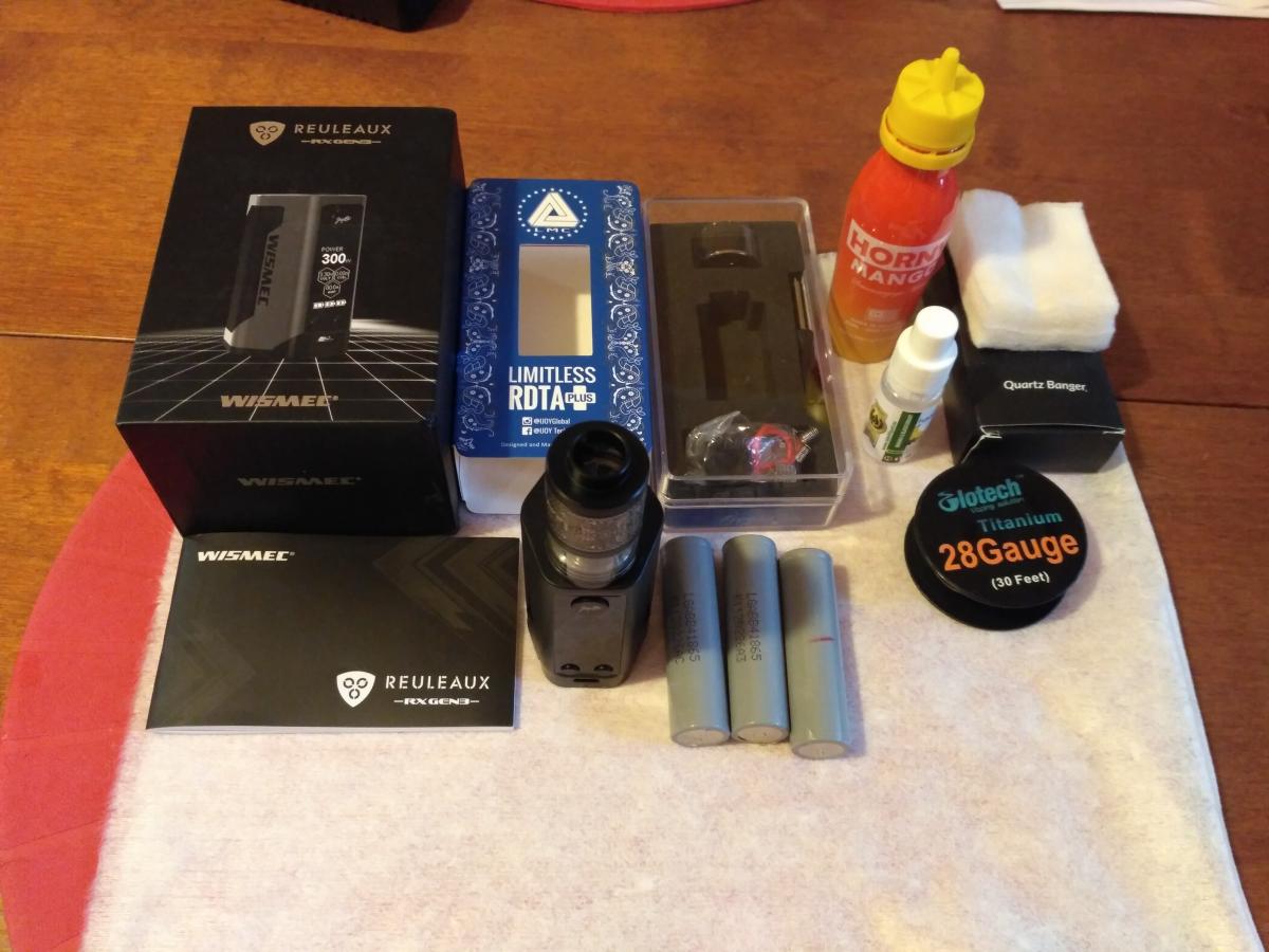 Бокс-мод Reuleaux RX GEN3 (300W) + прекрасный бак LIMITLESS RDTA много пара, вкуса и очень легко обслуживается. Бокс на трех аккумуляторах 18650 ооочень долгоиграющий, при этом эргономика не страдает, держать удобно.