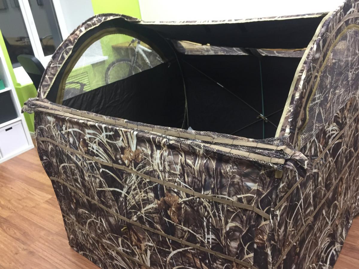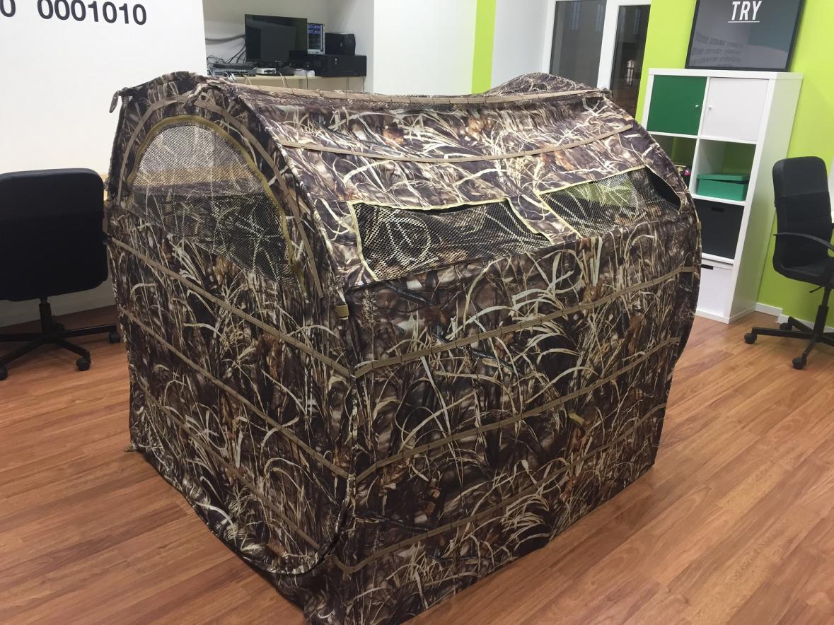 Собирается в рюкзак за спину. Сборка засидки за 10-15 минут.