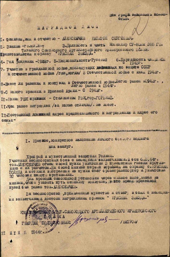 Наградной лист