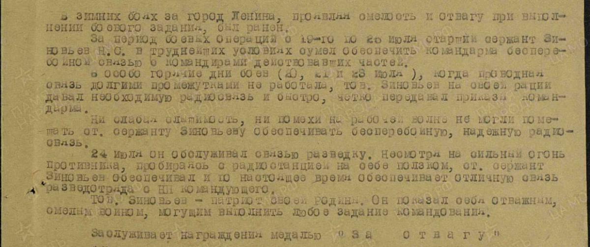 Старший сержант Зиновьев Николай Степанович - мой дед.