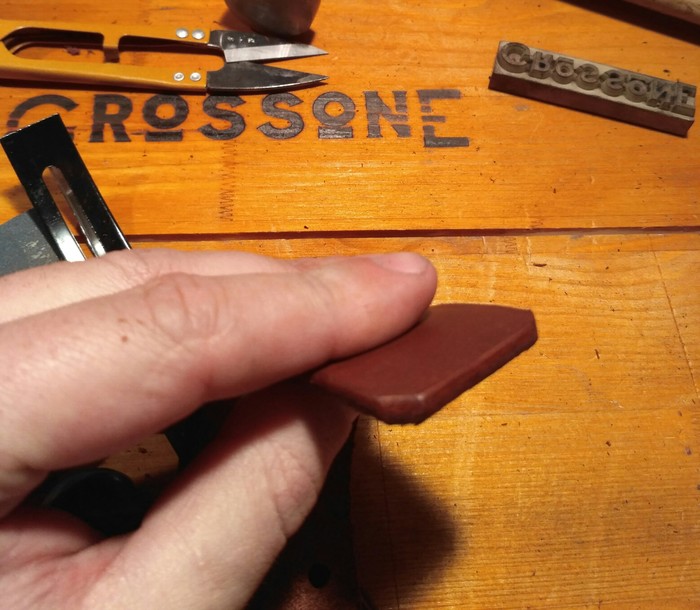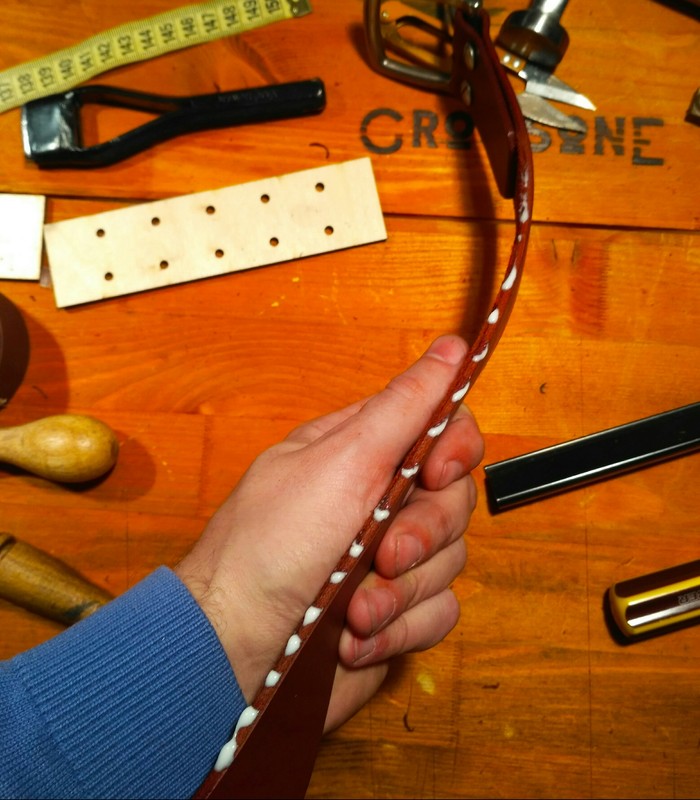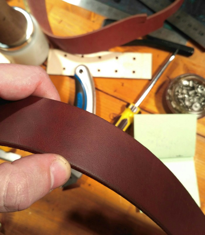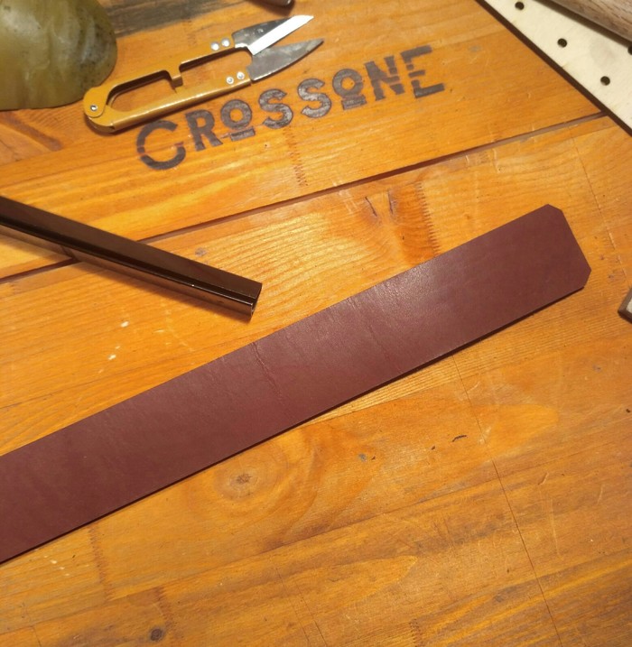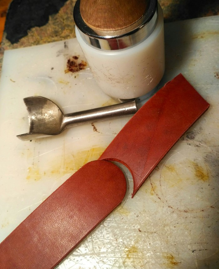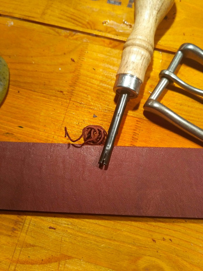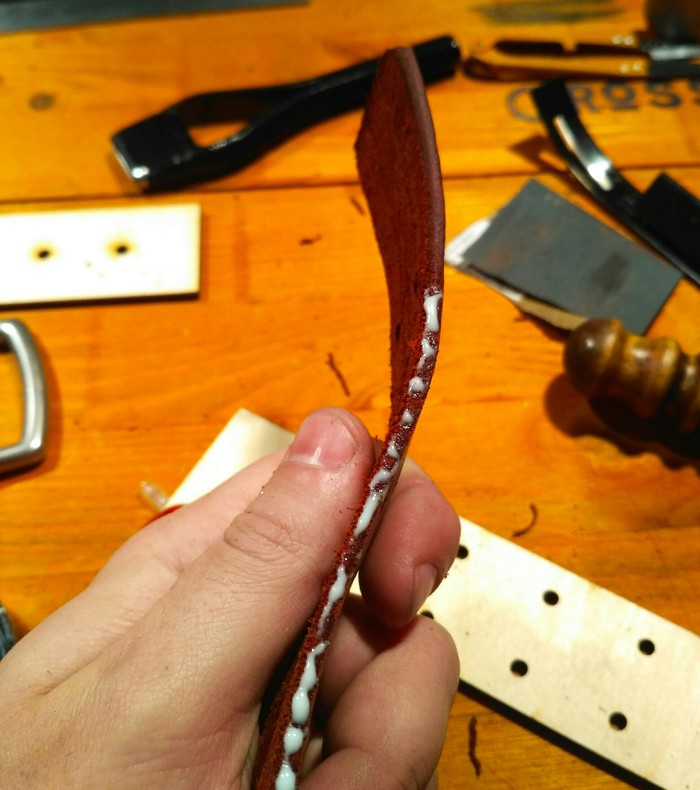 Кожа толстая, около 4-4,5 мм, поэтому шерфуем, или по-русски утоньшаем кожу для установки пряжки