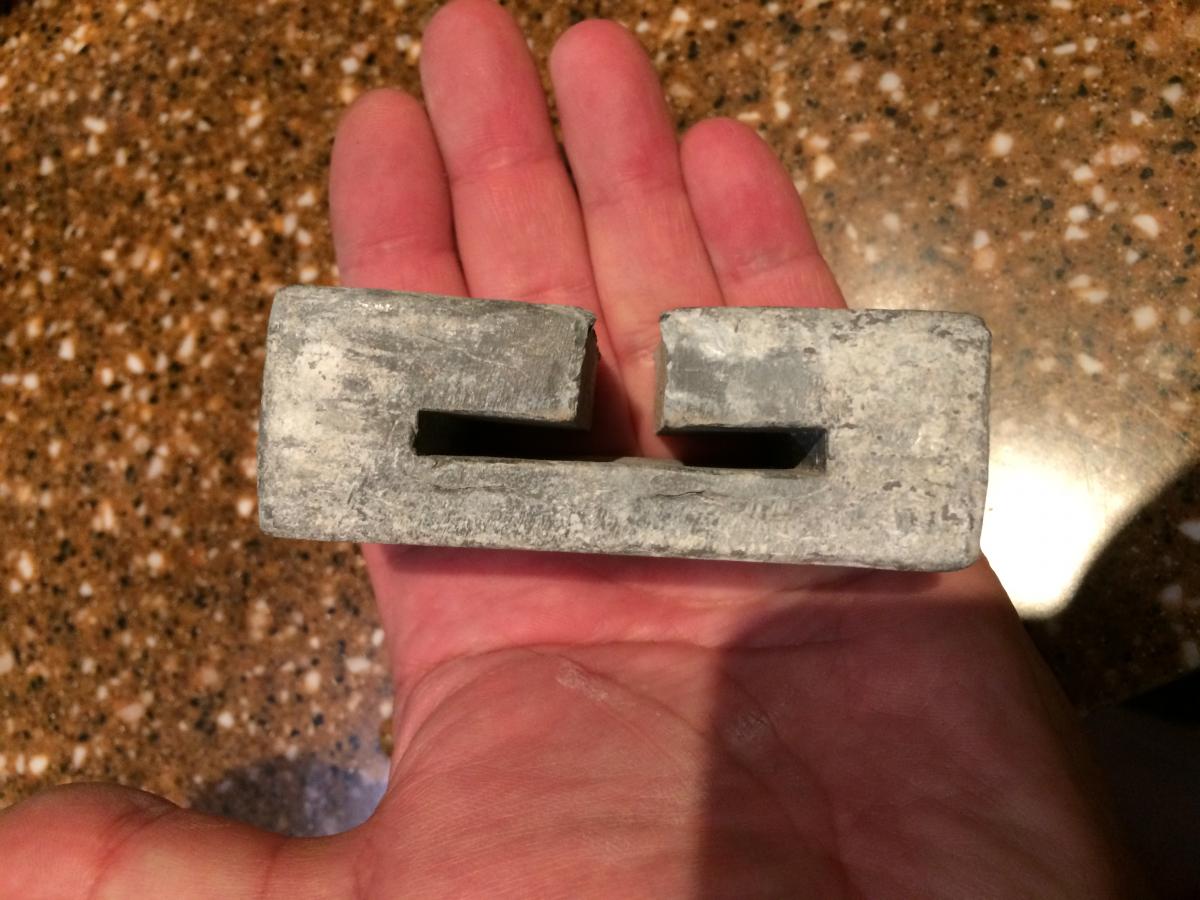Остатки смешал с накопившимся свинцовым ломом и отлил в порезанную пивную банку. Рядом для наглядности - отливка из предыдущей такой банки.
