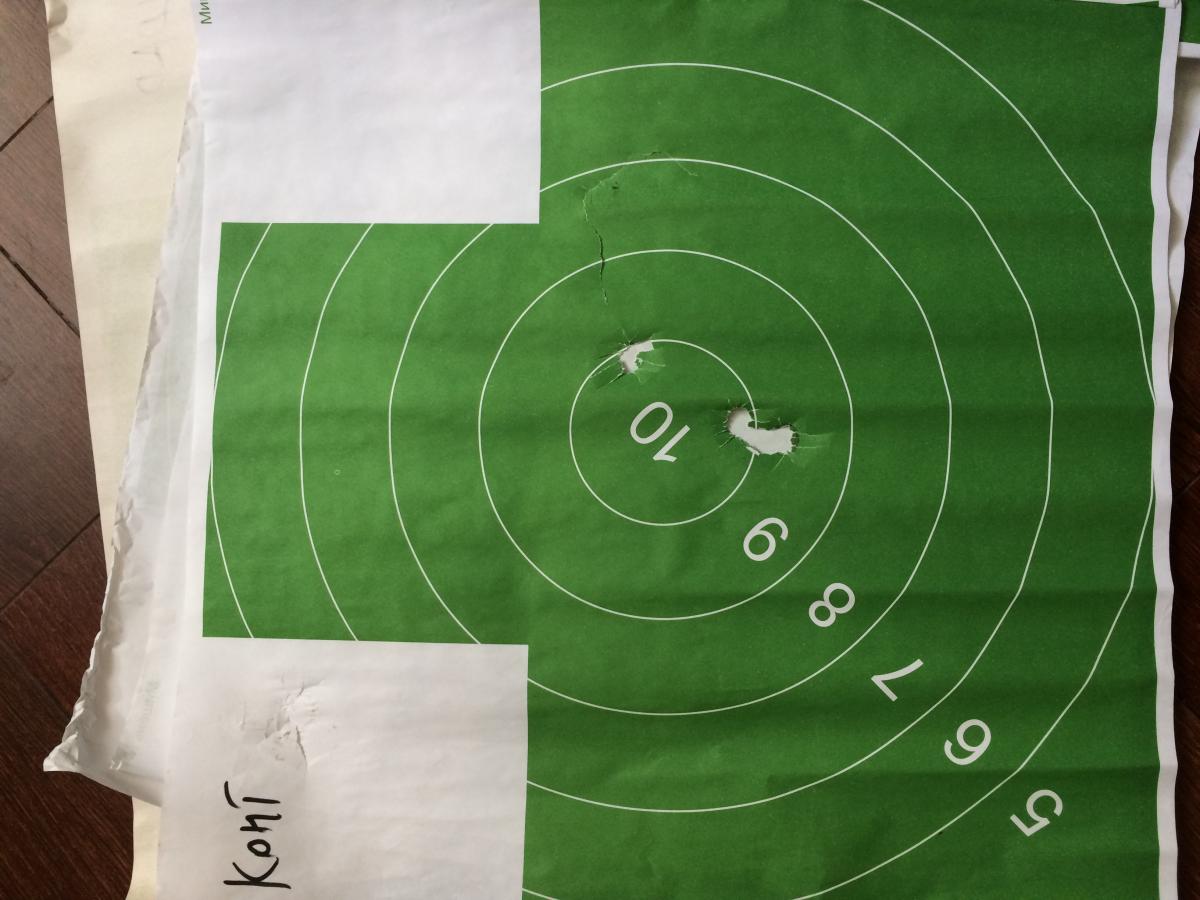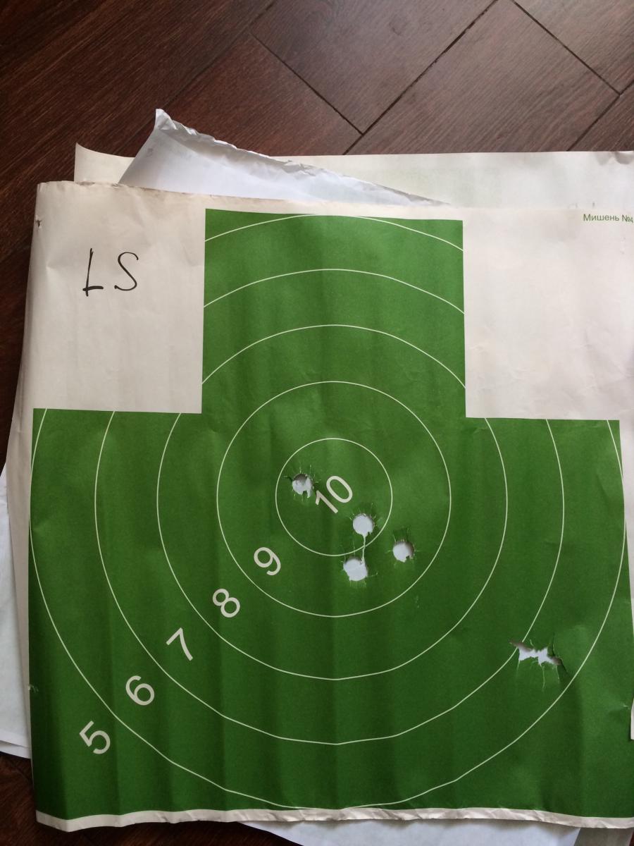 Слишком близко. На 50 метров в спортинговую тарелку - это поинтересней будет. С нетривиальными прицельными, разумеется. ИМХО в стрельбе с рук - гораздо важнее руки, чем прицельные приспособления. Хотя прицельные конечно помогают, но если руки не держат - то от этой помощи нету толка.