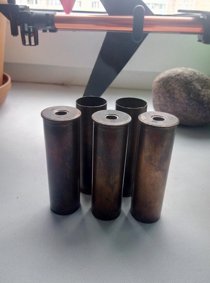 Гильзы биметалл омеднённые, расточены под КВ, внутри запресованы донца от пластиковых гильз.